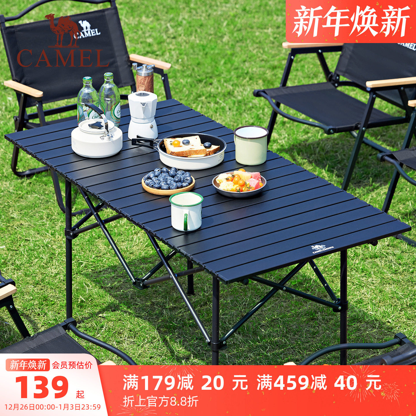 骆驼户外折叠桌便携式露营野炊装备全套桌子蛋卷桌铝合金野餐桌椅