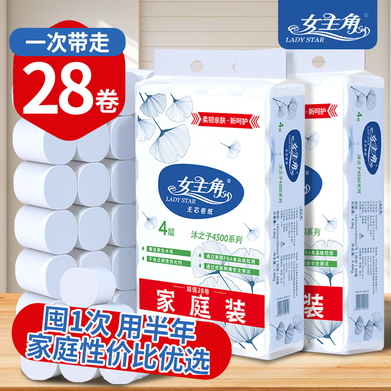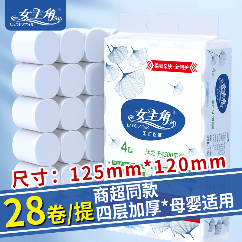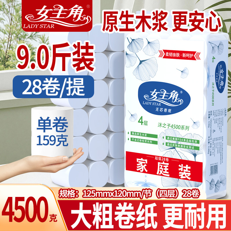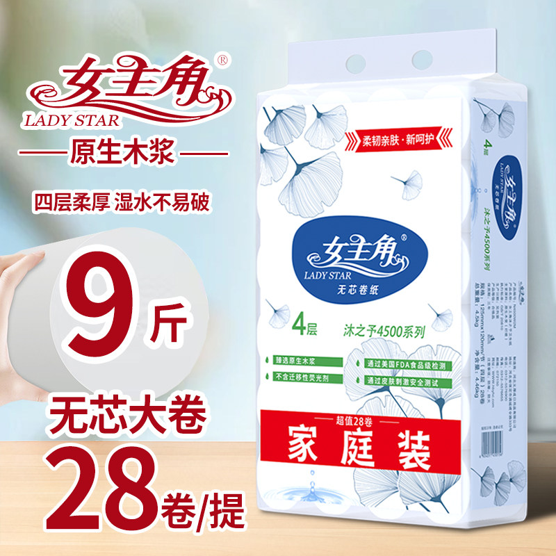 女主角9斤28卷无芯卷纸家庭实惠4层加厚卷筒纸卫生纸厕纸原生母婴