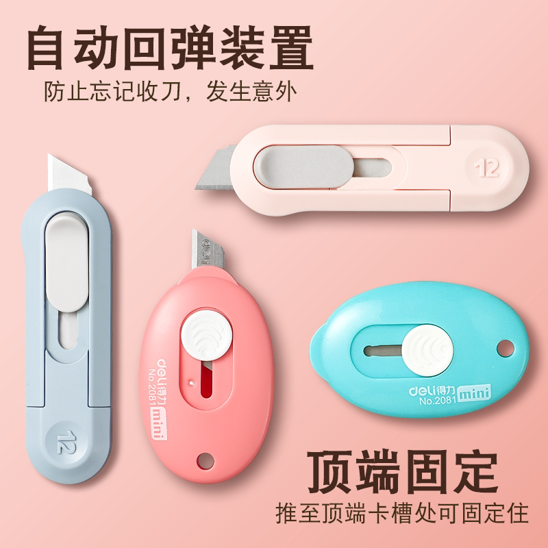 得力美工刀拆快递神器小刀小号割包裹开箱器迷你随身小型小刀考研专用美术刀壁纸刀裁纸刀具学生可爱钥匙扣