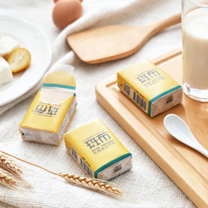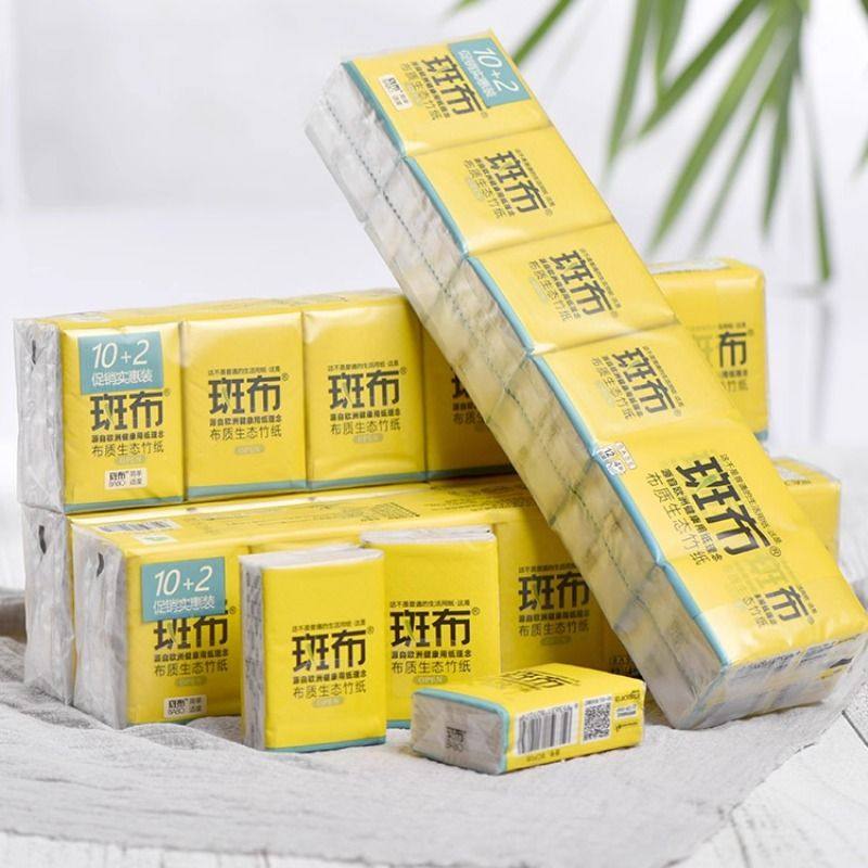 斑布4层便携式小包手帕纸60包随身装竹浆本色面巾纸餐巾纸卫生纸