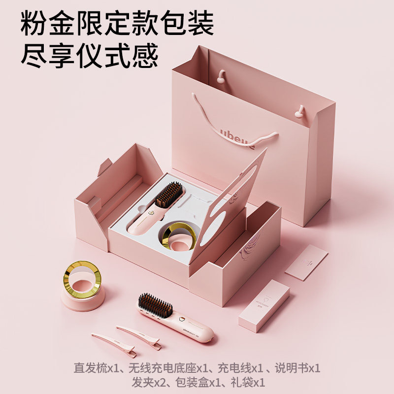 情人节新年礼物UBelle无线直发梳负离子不伤发便携直卷两用卷发棒