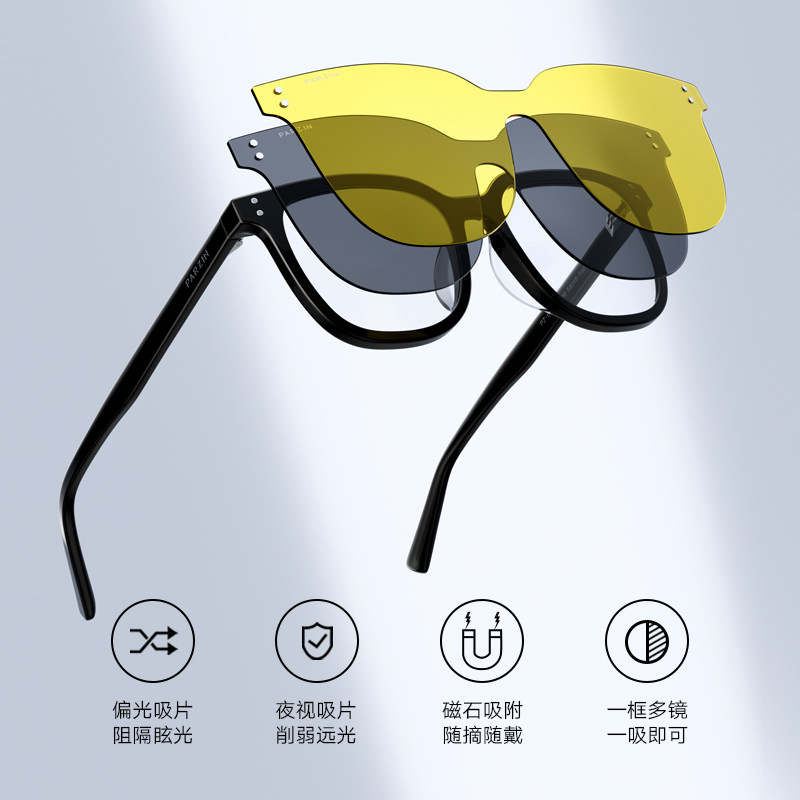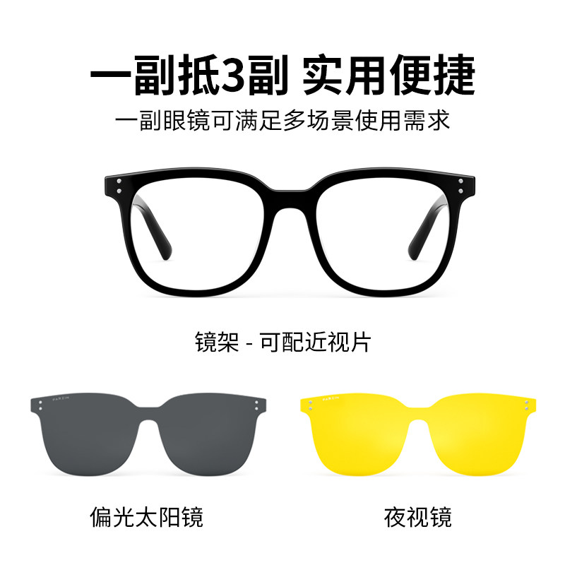 帕森磁吸偏光太阳镜男女款偏方框三合一眼镜架防紫外线墨镜66109