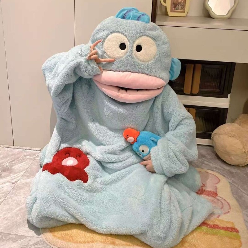 加厚冬季趣味丑鱼卡通可爱超萌连体睡袍女款居家休闲服