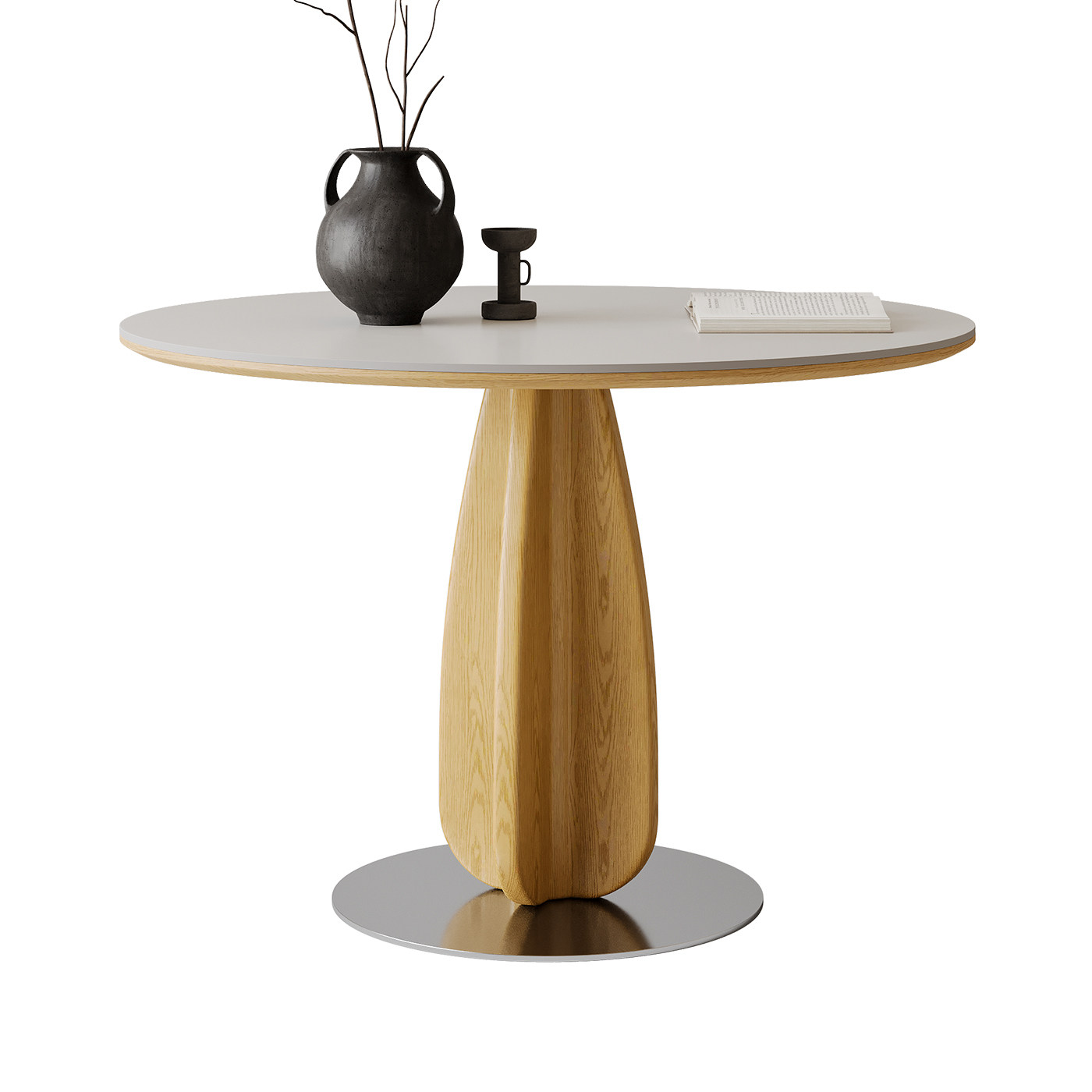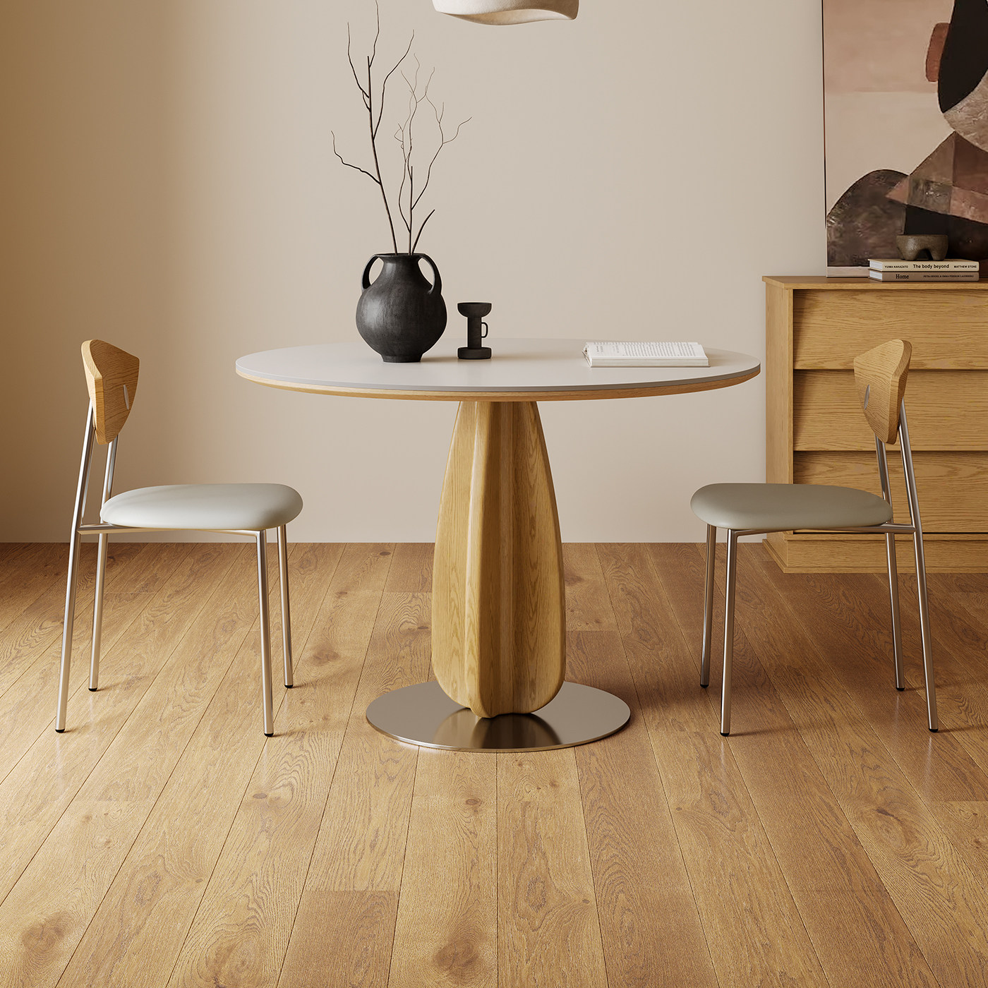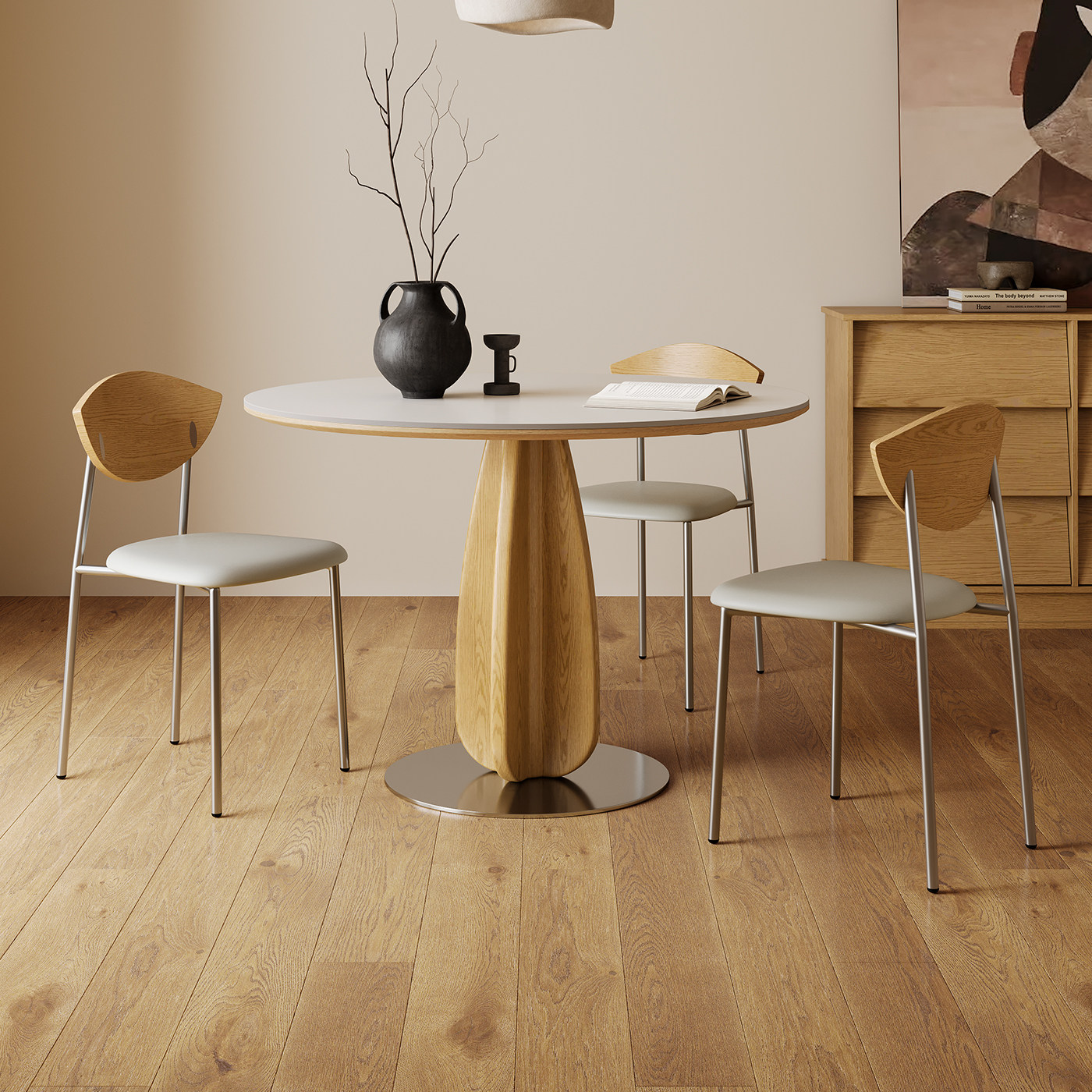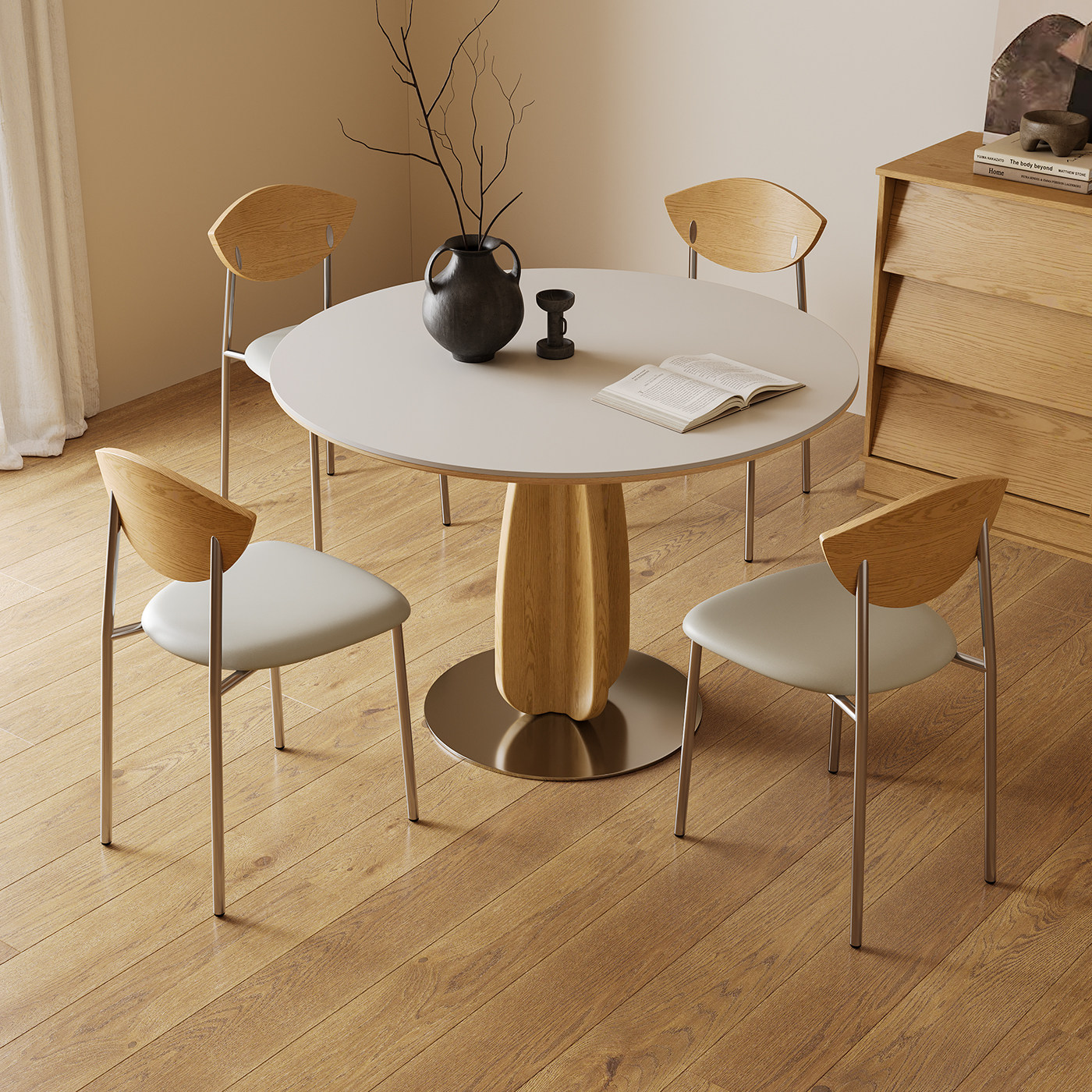 原木风实木餐桌圆桌家用小户型2025新款日式奶油风洽谈岩板餐桌