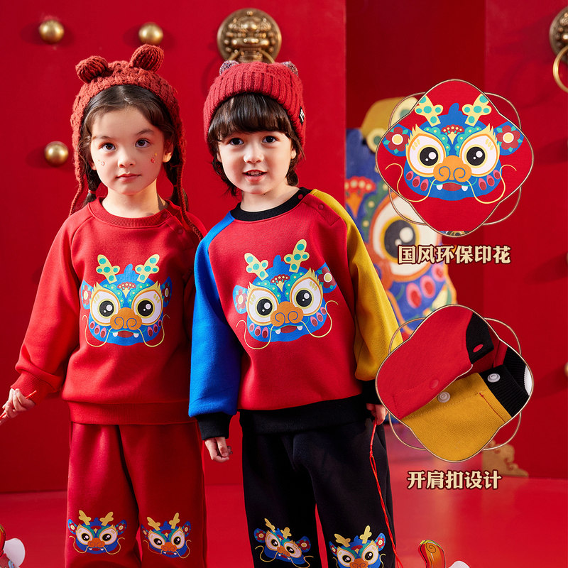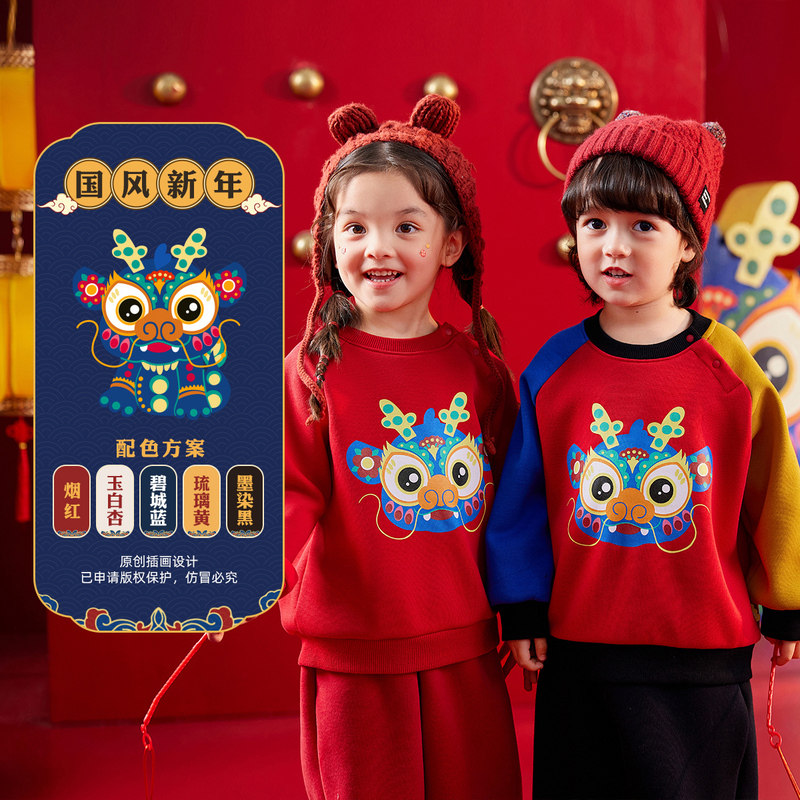 嘟嘟家年装男童新年唐装卫衣儿童拜年服宝宝过年喜庆衣服新款年装