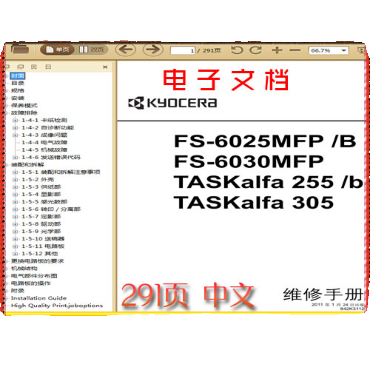 京瓷 FS-6025MFP 6030MFP TASKalfa 255b 305 复印机中文维修手册