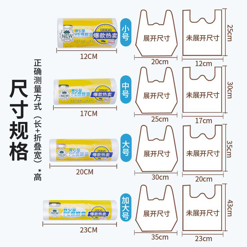 背心式食品保鲜袋小号厨房专用塑料袋家用一次性加厚方便袋保鲜膜