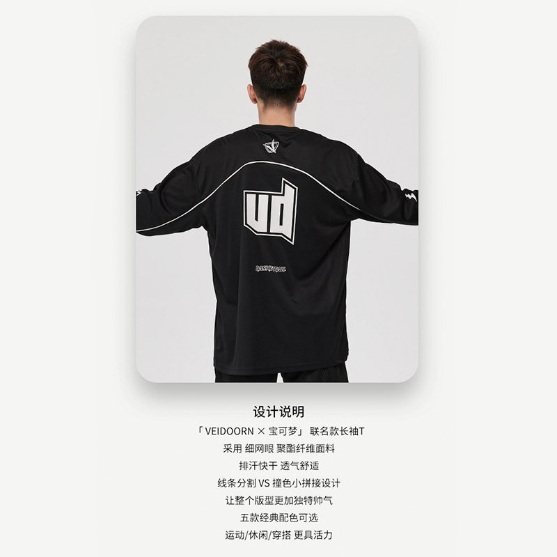 维动宝可梦联名长袖投篮服T恤男美式篮球训练服运动跑步透气上衣V