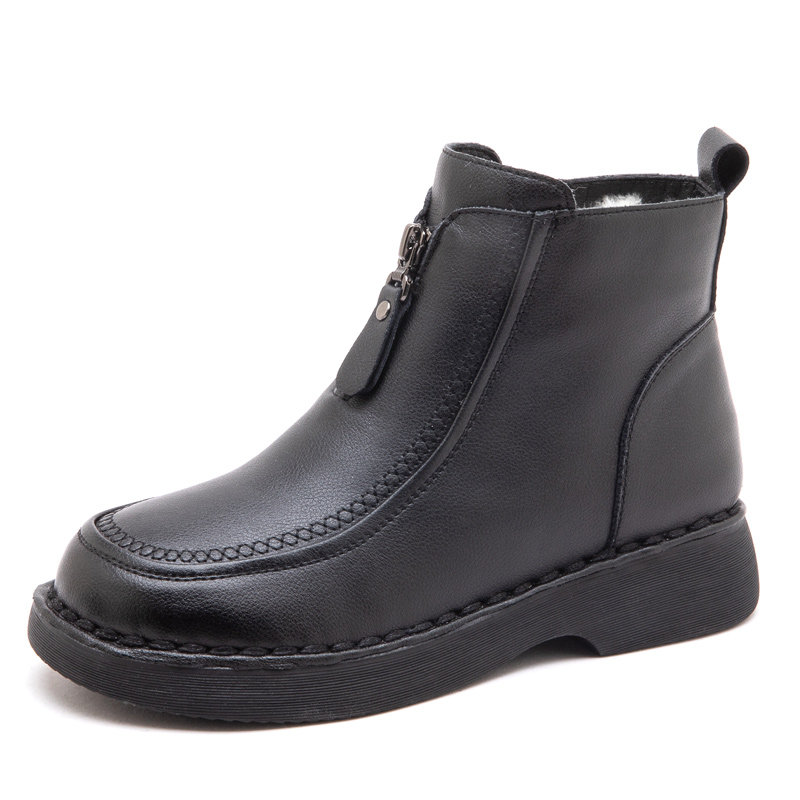 他她女孩短靴皮毛一体羊毛真皮妈妈加厚棉鞋女冬季中老年女士防滑