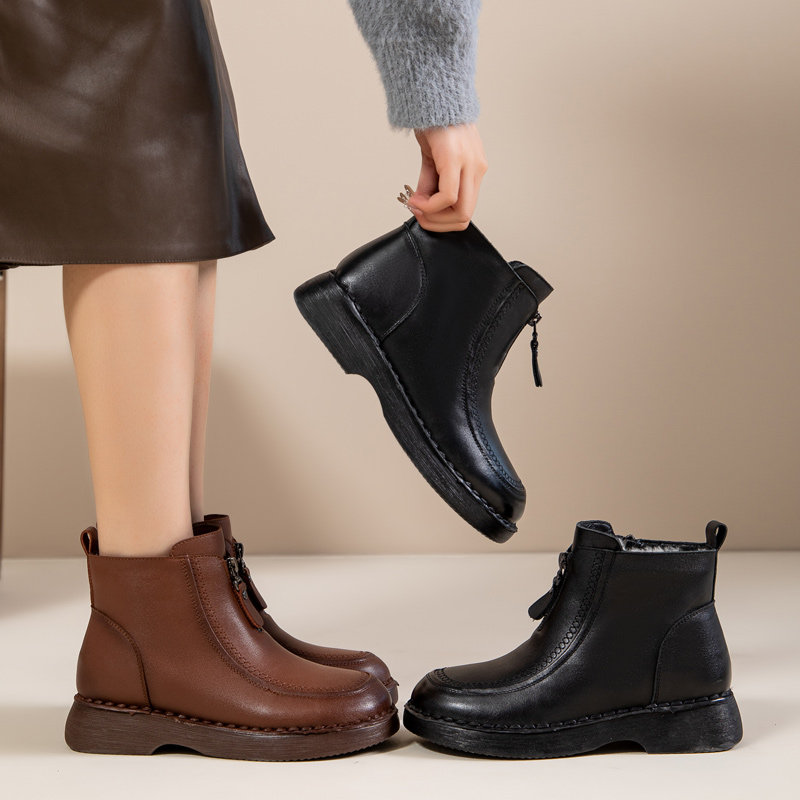 牛皮版~内增高复古短靴女2025秋冬西部马丁靴圆头短筒勃肯堆堆靴