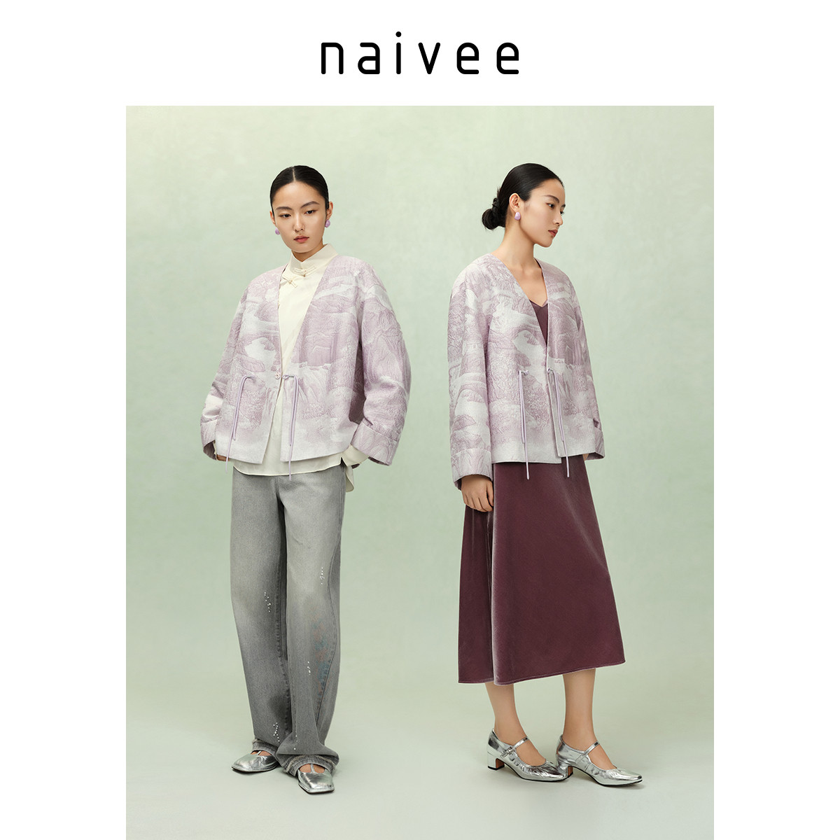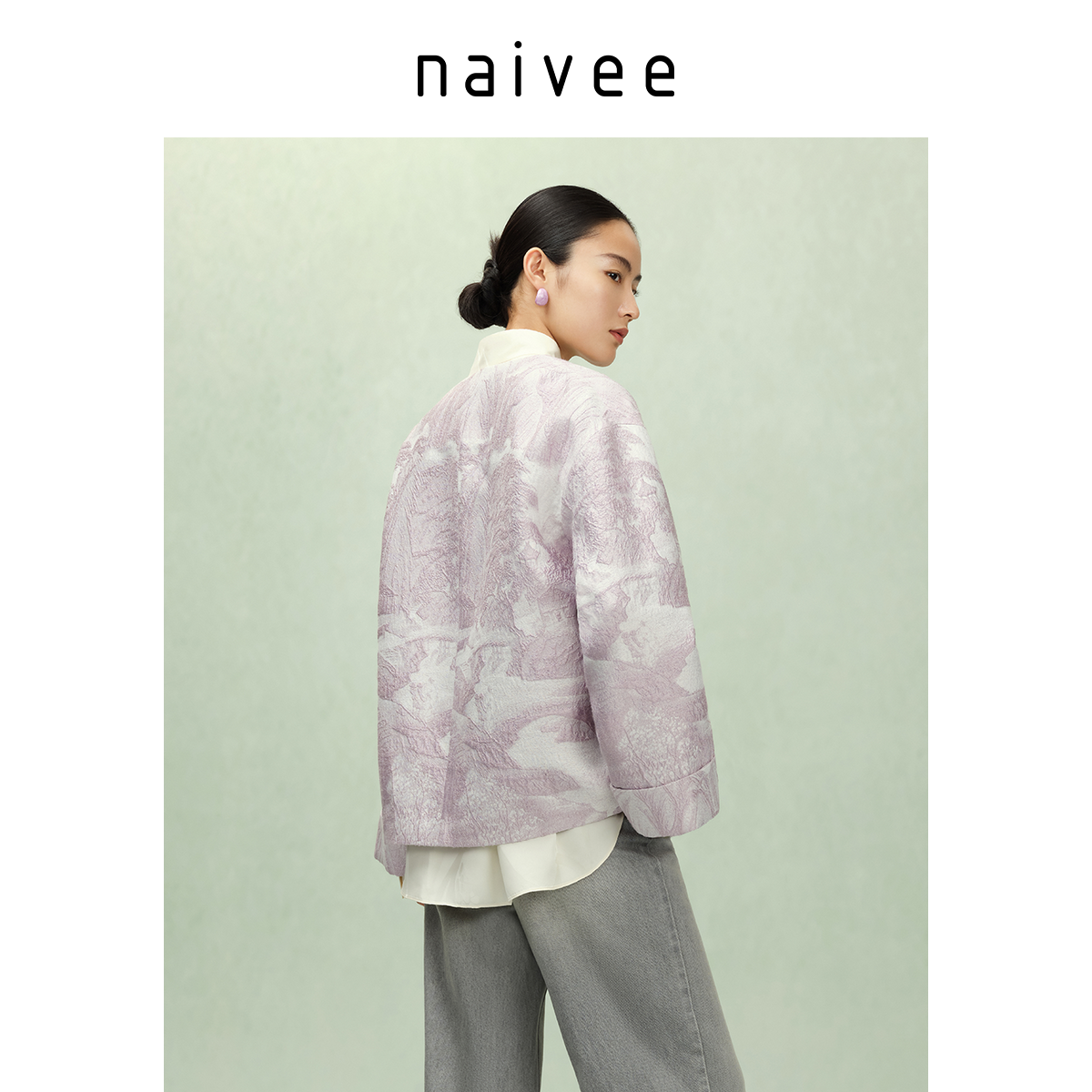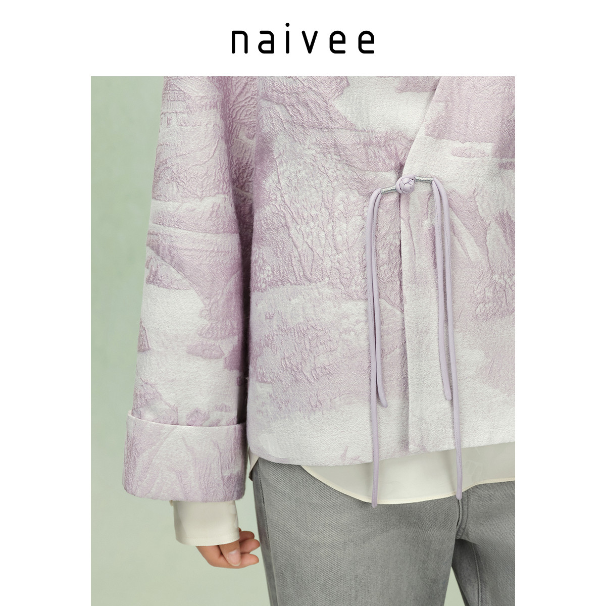 【紫气东来新中式】naivee纳薇25秋新款浮雕肌理提花V领盘扣外套
