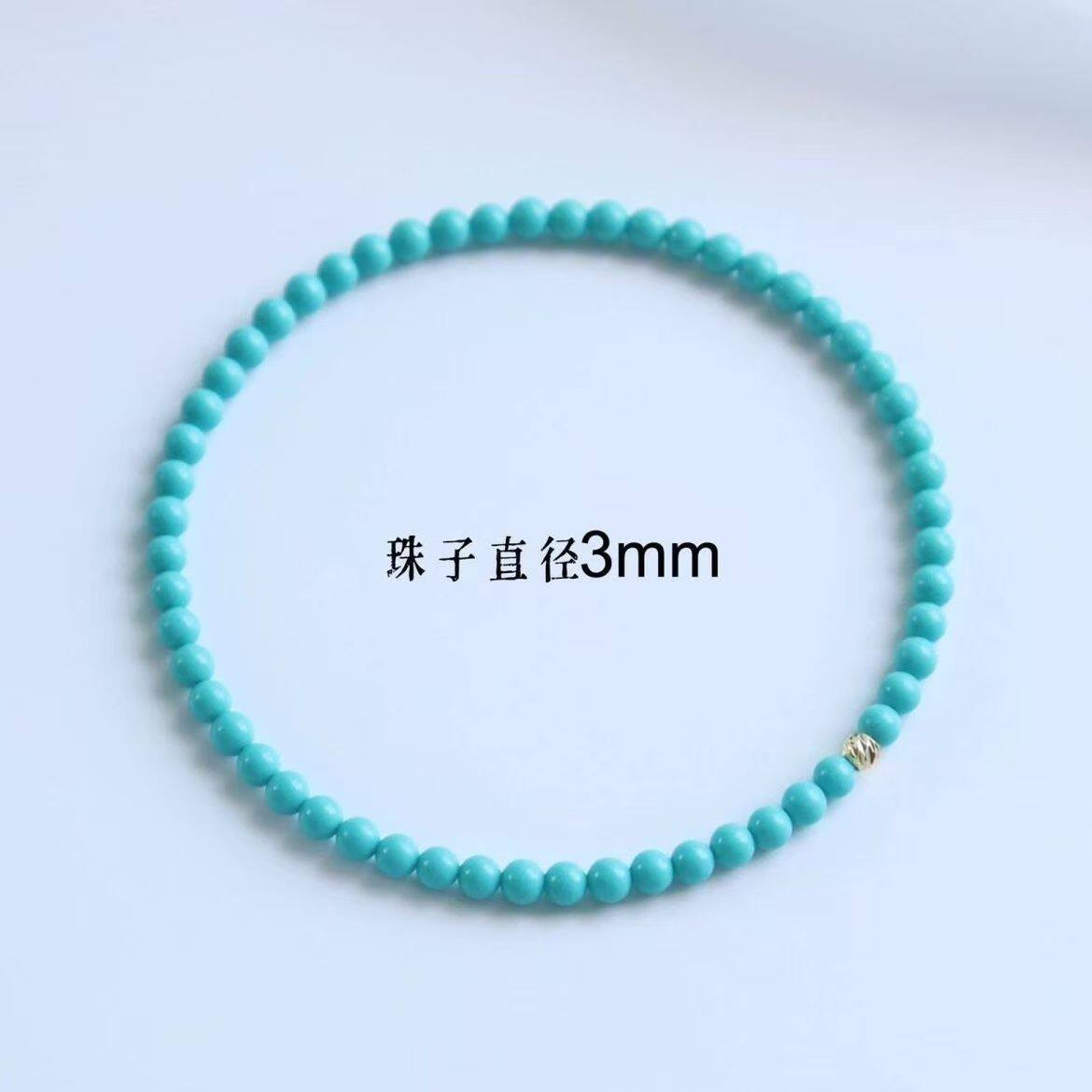 天然绿松石小米珠手串单圈保真4mm极细手链文玩好运招财幸运礼物
