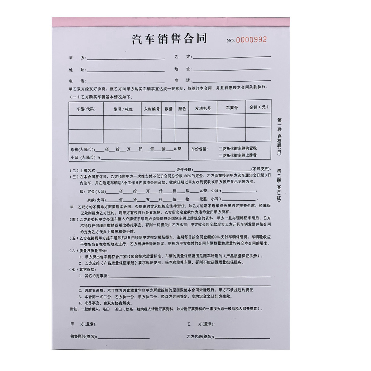 包邮汽车销售合同二联新车销售协议车行购车协议书车辆转让可定做