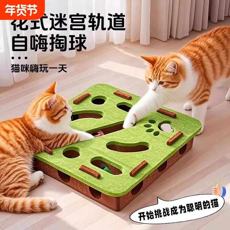猫玩具自嗨解闷神器宠物小猫益智迷宫掏球乐智力训练盒逗猫铃铛球