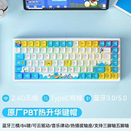 客制化三模84键无线有线蓝牙RGB静音机械键盘热插拔套件联名主题