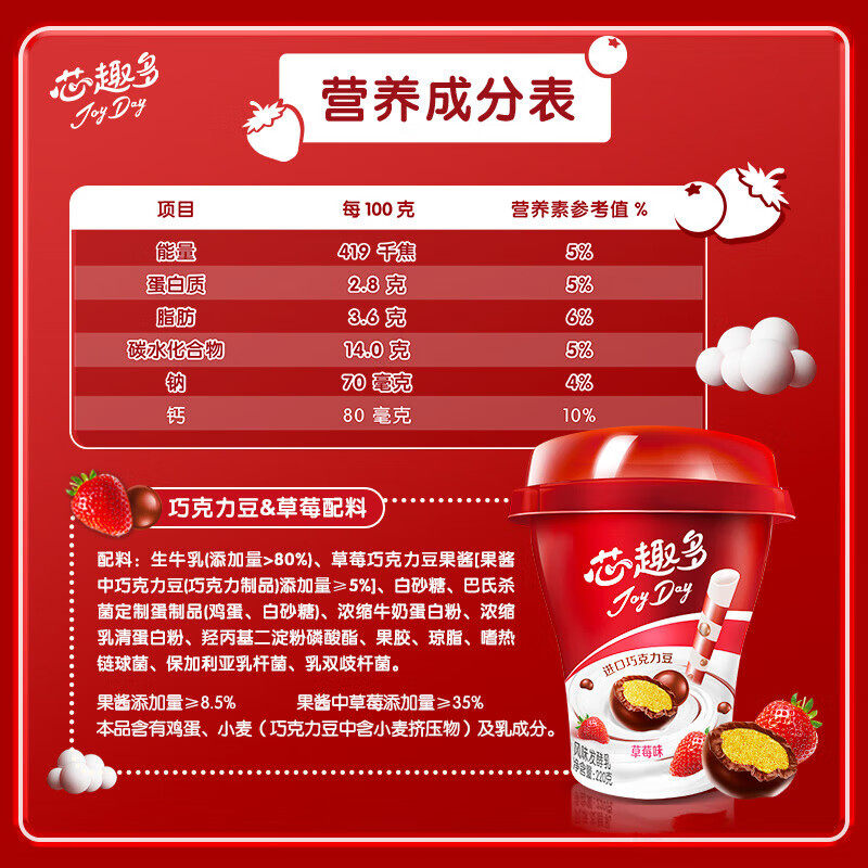 【顺丰包邮】伊利芯趣多JoyDay巧克力豆草莓蓝莓酸奶220g*6杯