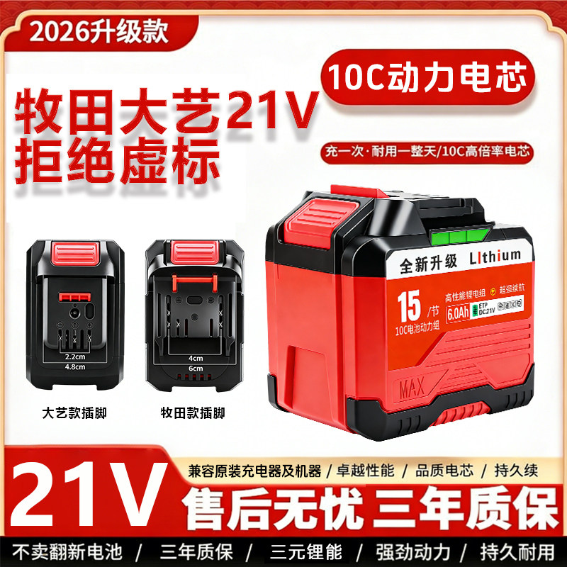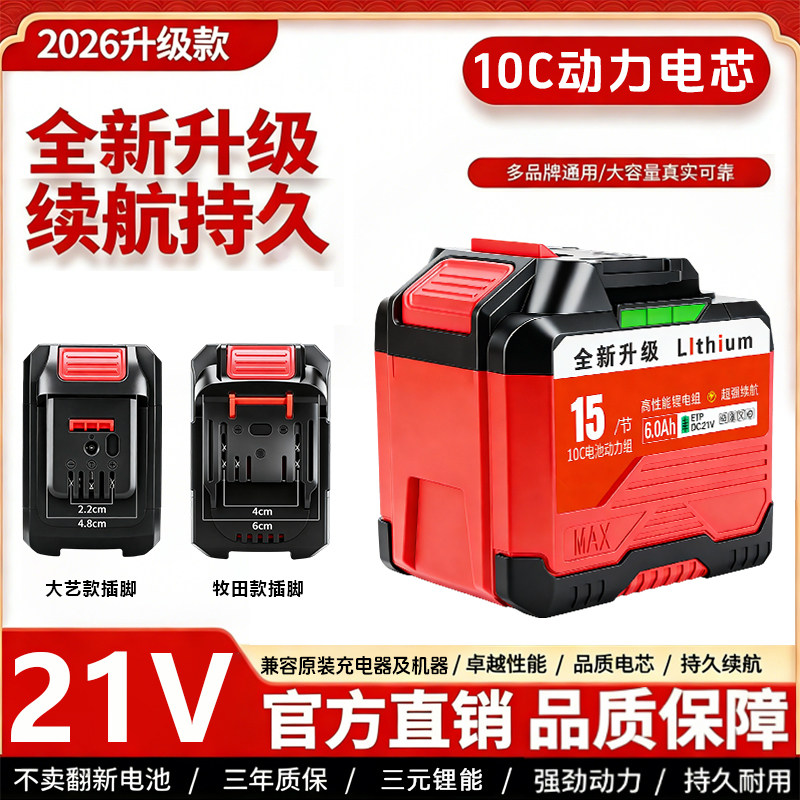 21v电动扳手锂电池适用大艺牧田款电池电动工具角磨机电锯充电