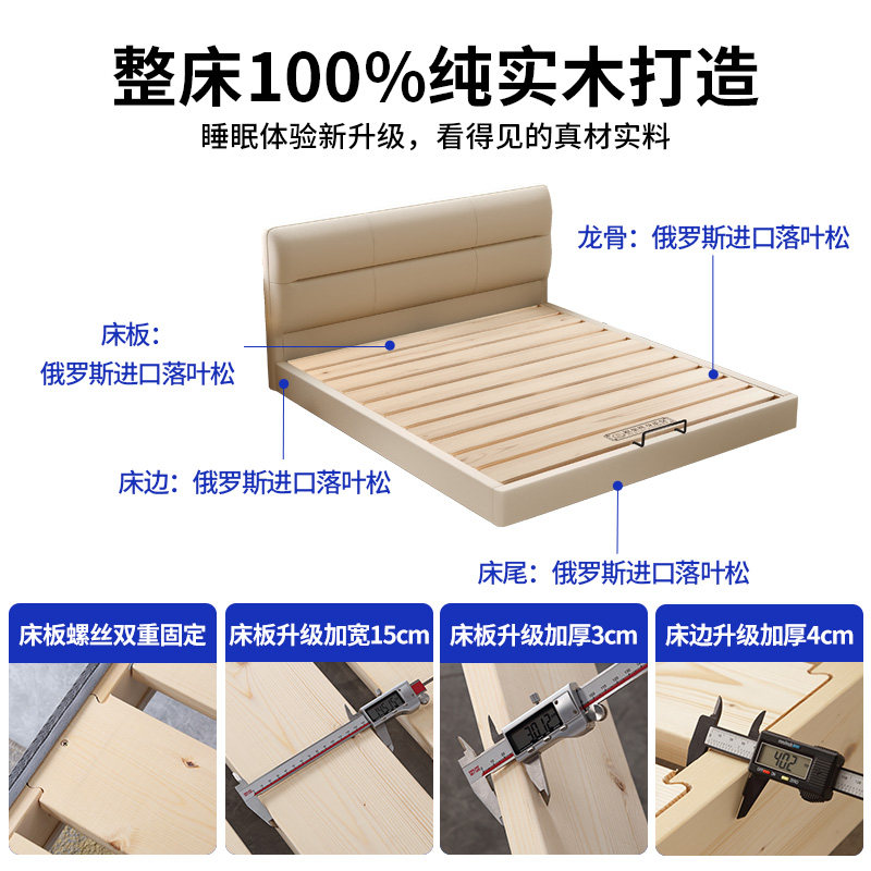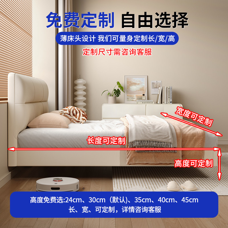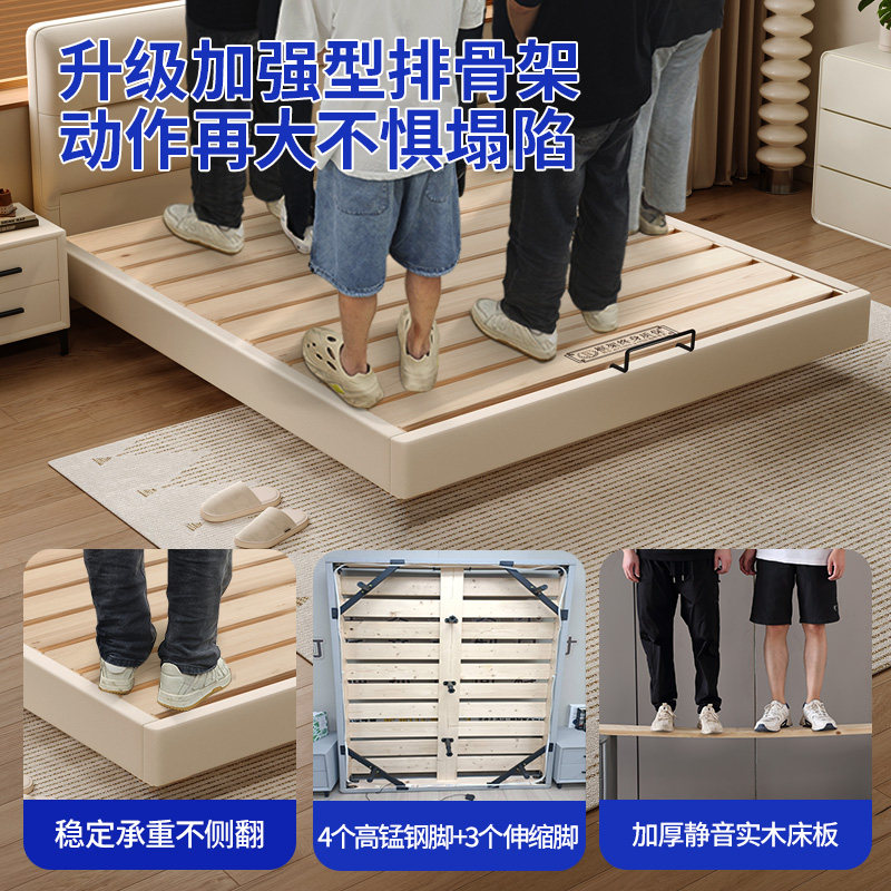 奶油风中小户型主卧悬浮床全实木加厚燕尾榫床板静音床可定制尺寸