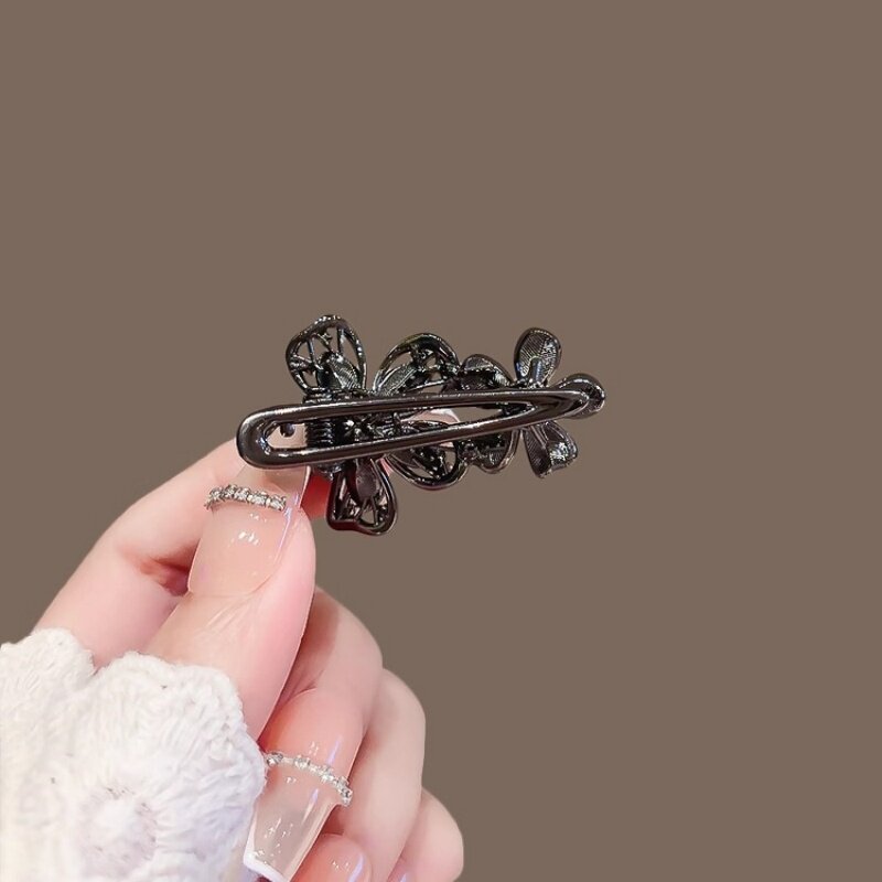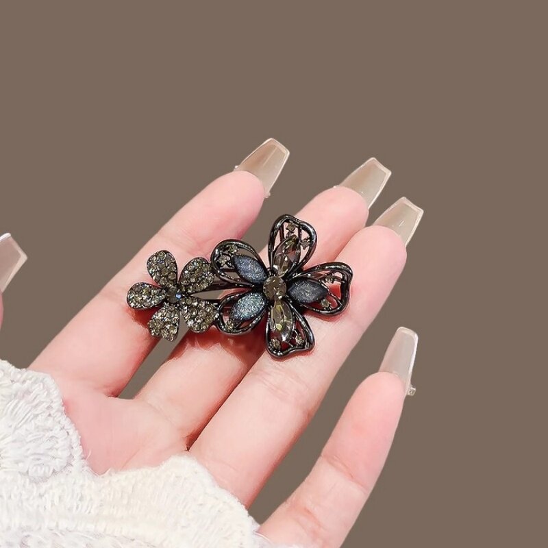 新款甜美水钻琉璃花朵发夹女气质鸭嘴夹高级感侧边碎发刘海夹发卡