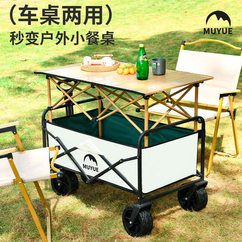 户外露营车可折叠便捷拉杆手推车野餐营地摆摊桌板旅行快递小推车
