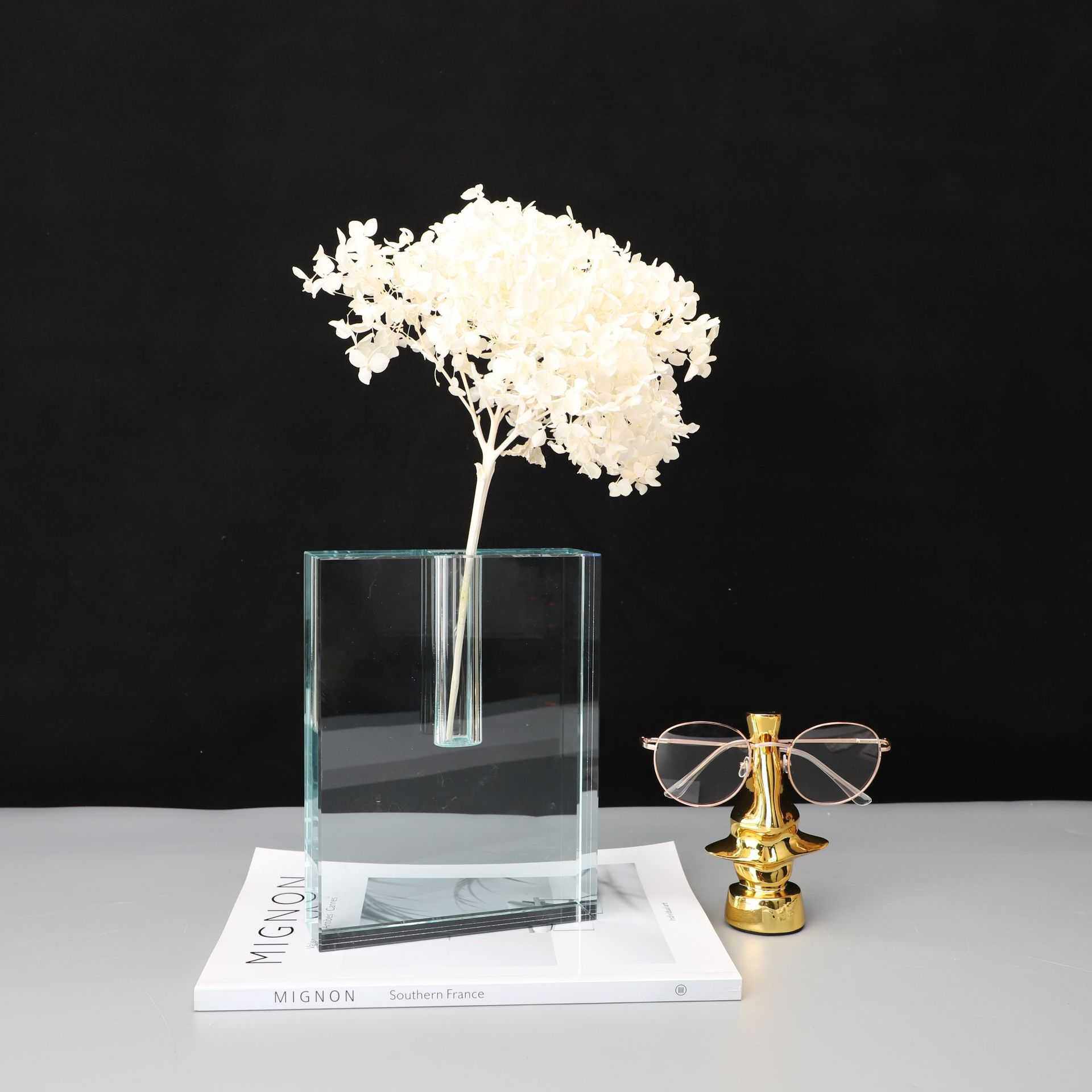 现代简约透明水晶花器花插样板房电视柜卧室书房客厅桌面玄关饰品