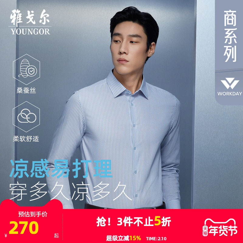 【10%桑蚕丝凉感】雅戈尔春季新品条纹商务休闲易打理长袖衬衫男