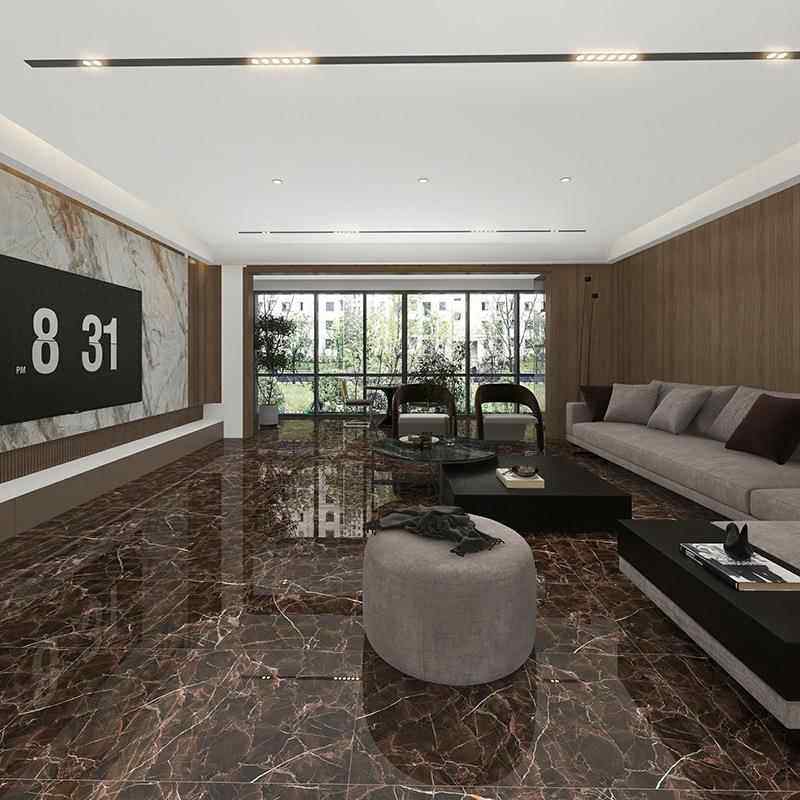 通体大理石深色奢石瓷砖600×1200 客厅餐厅地砖咖色防滑地板砖