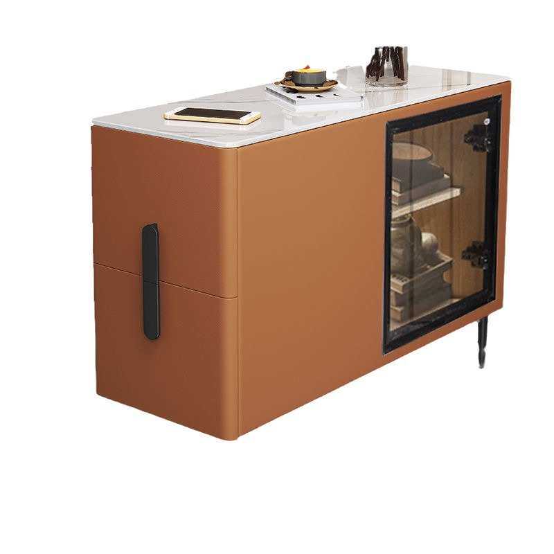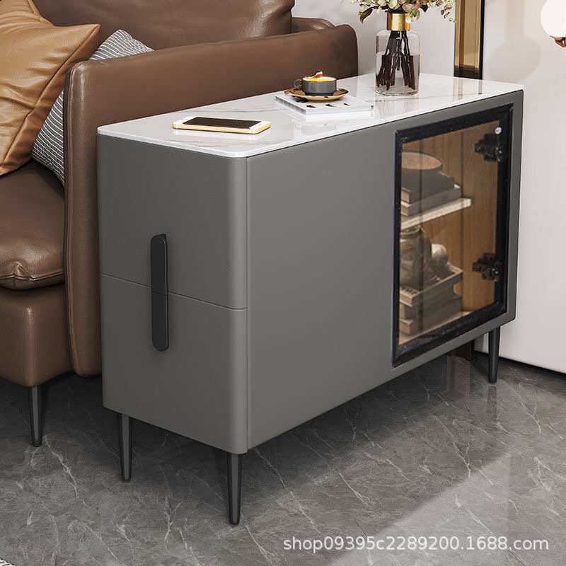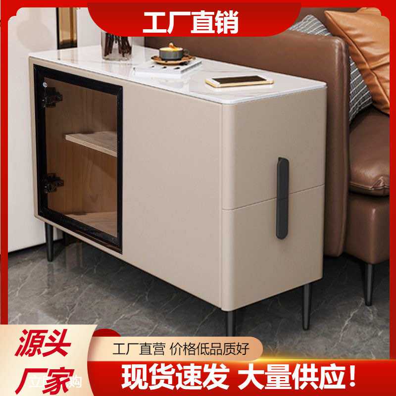 2023款高级全实木岩板带抽屉多功能沙发边柜侧边柜现代简约轻奢