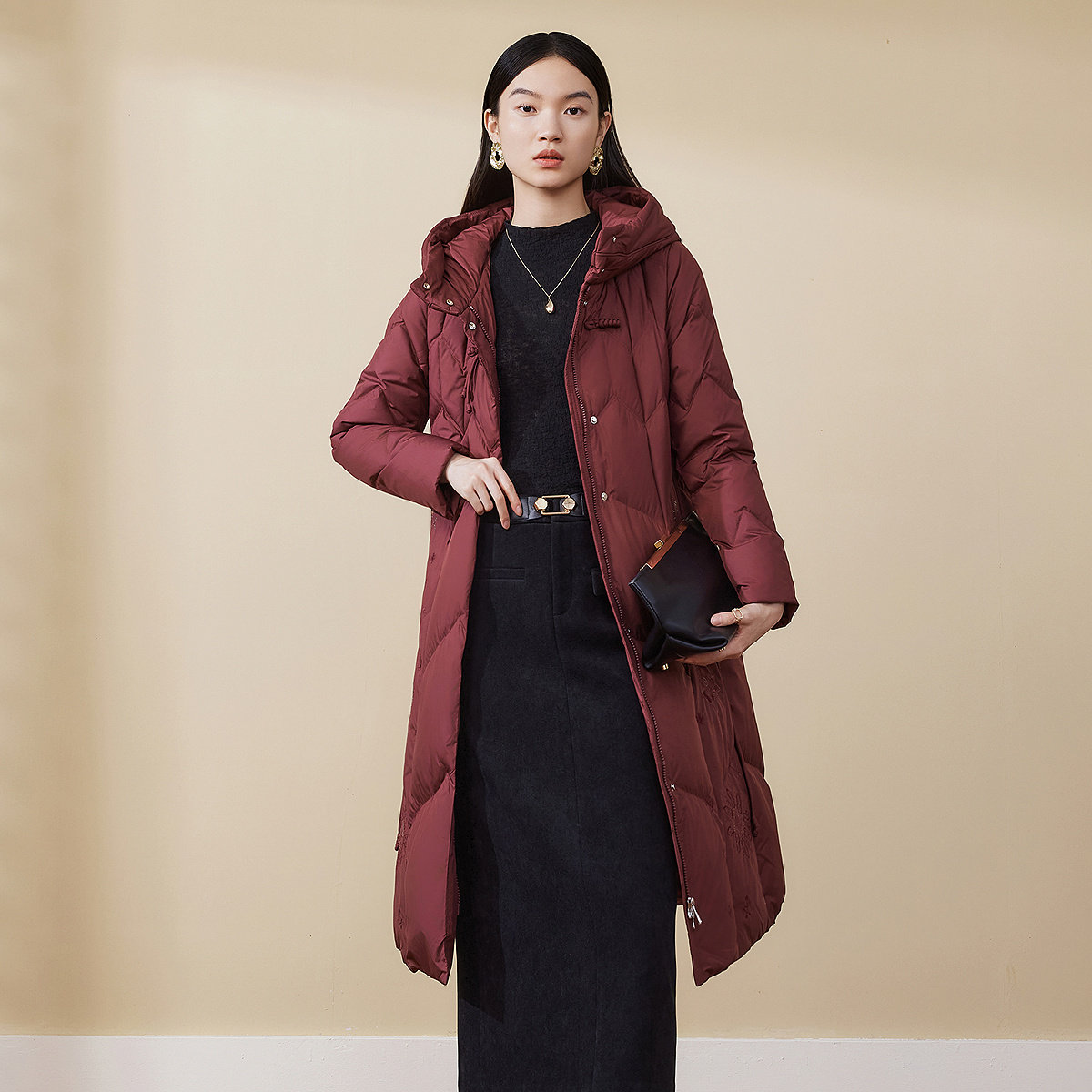 鸭鸭中戏pro羽绒服女冬季反季中长款羽绒服过膝加厚95绒波兰鸭绒J