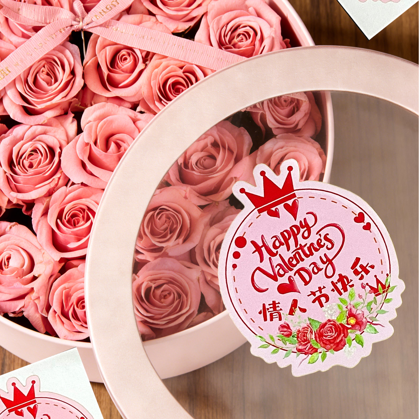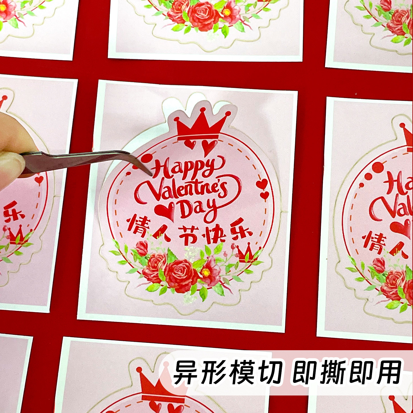新款七夕情人节快乐装饰异形贴纸定制礼物烘焙玫瑰鲜花束杯子小图案封口贴画不干胶标签贴送男女朋友老公老婆