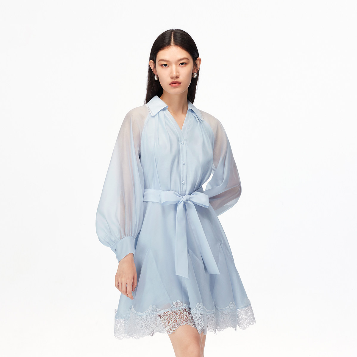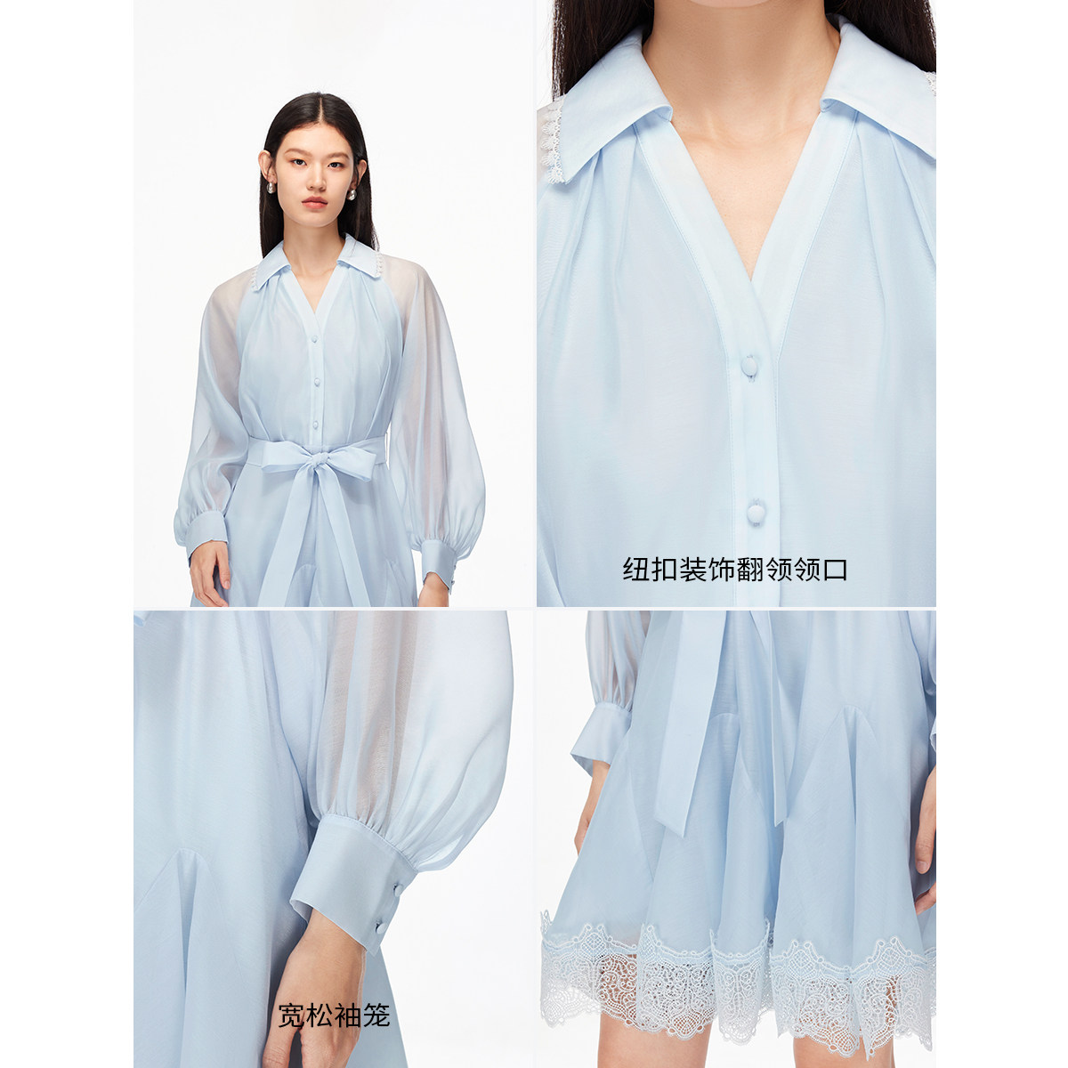 Vero Moda连衣裙2025秋季新款纯色腰带蕾丝饰边高腰短裙灵动浪漫