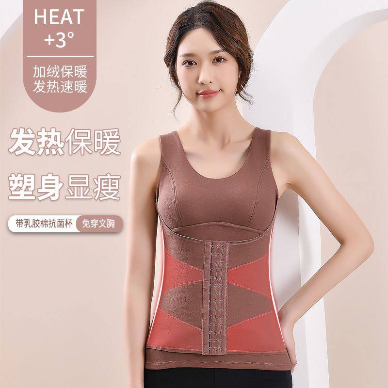 德绒保暖背心女塑身美体收腹打底内衣发热加绒加厚款免穿文胸塑形
