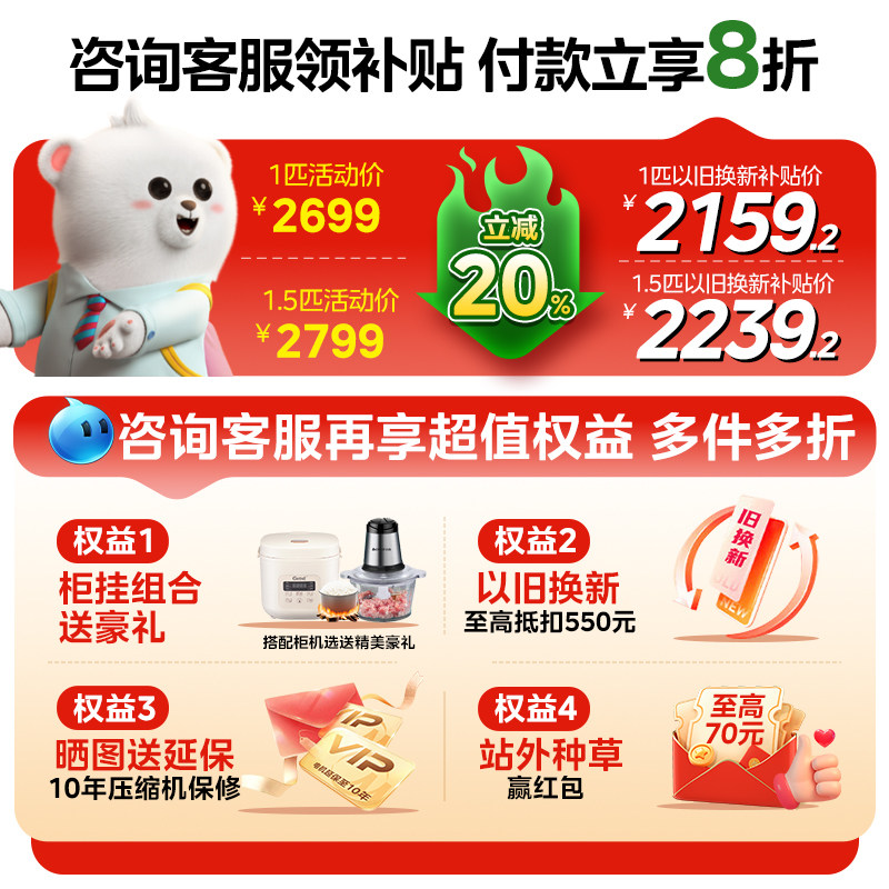 [国补20%】海尔空调3匹2匹大挂机家用客厅一级能效变频冷暖旗舰店