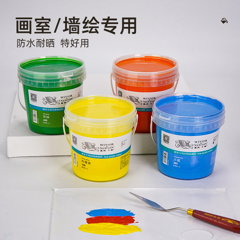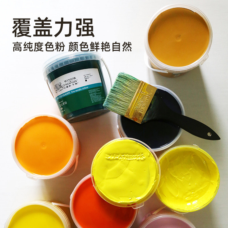 温莎牛顿画家专用丙烯颜料1L大容量顿顿桶防水纺织墙绘30色流体画学生画室专用室外墙绘涂鸦手工DIY柠檬黄