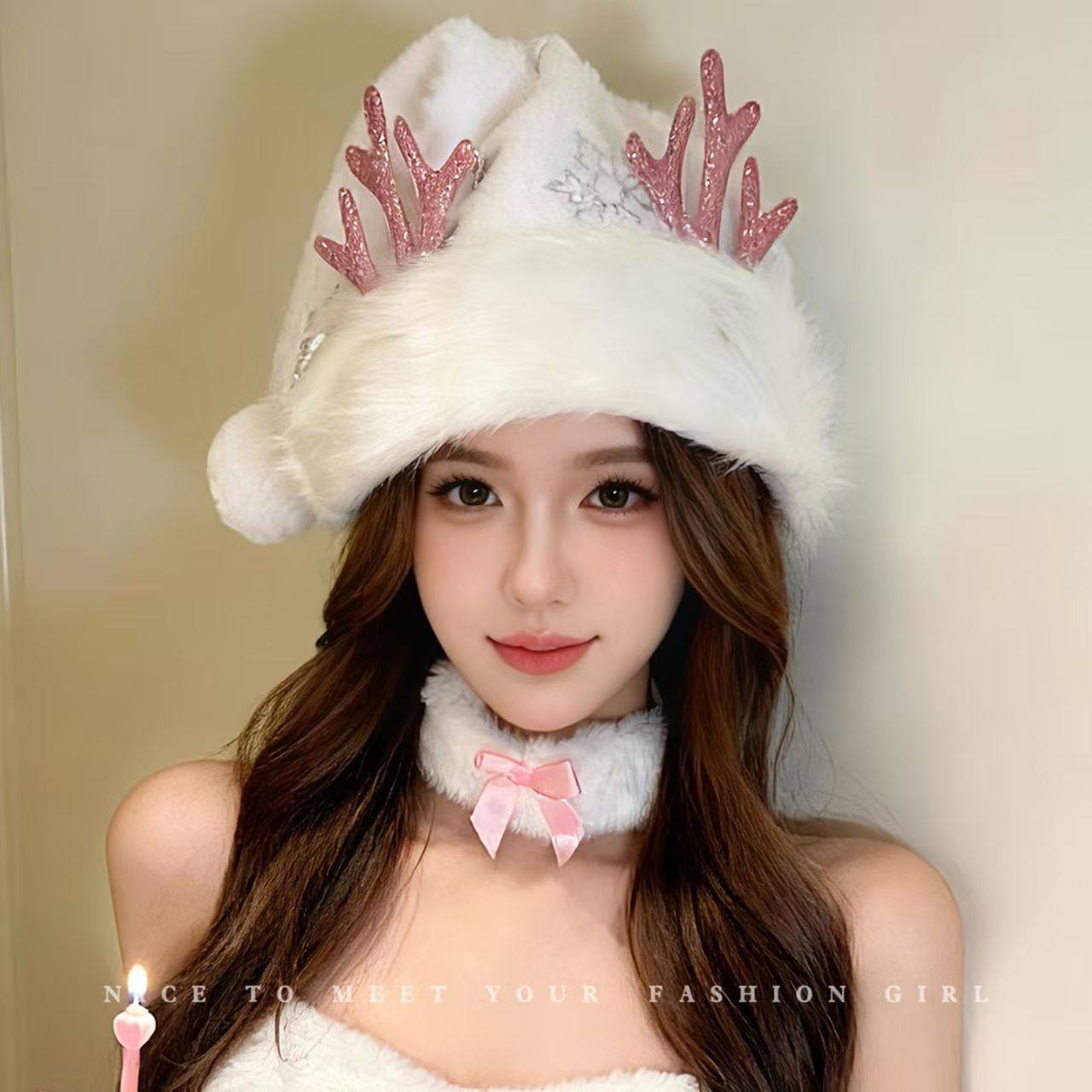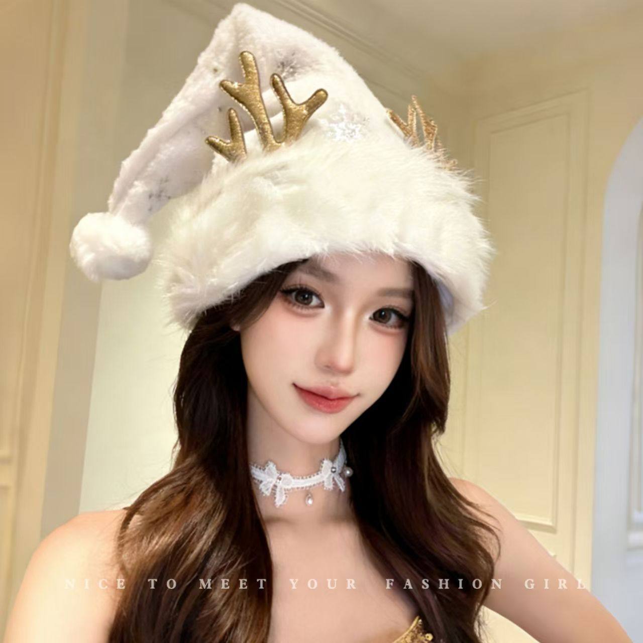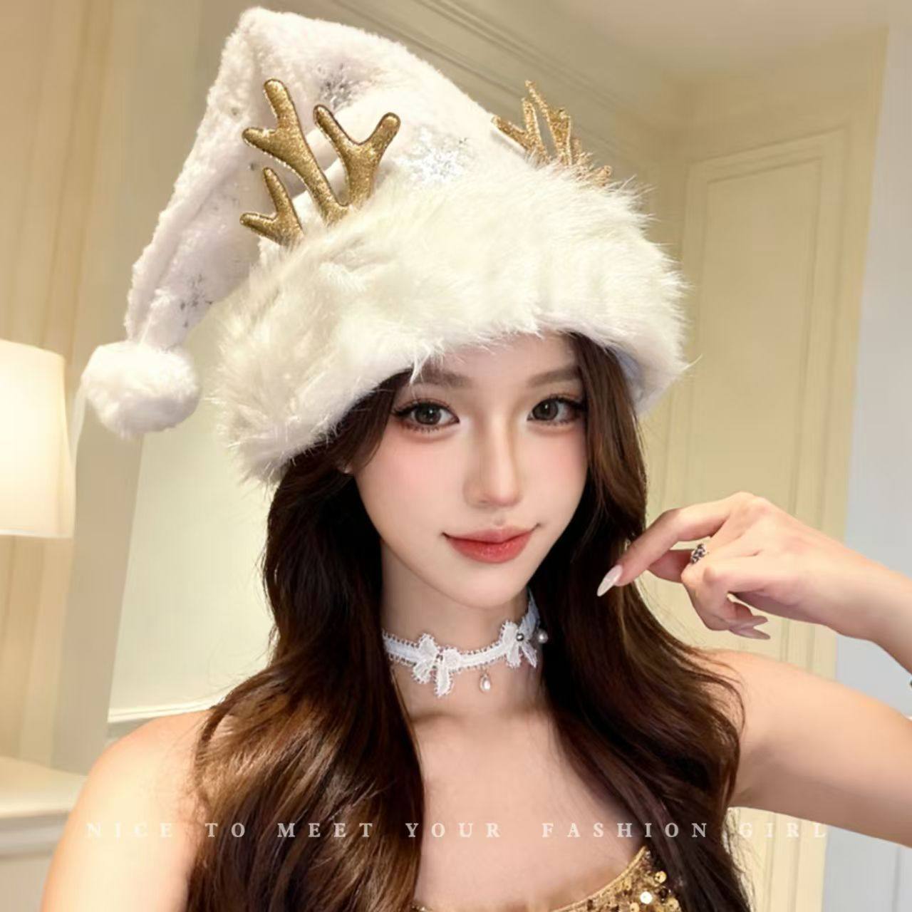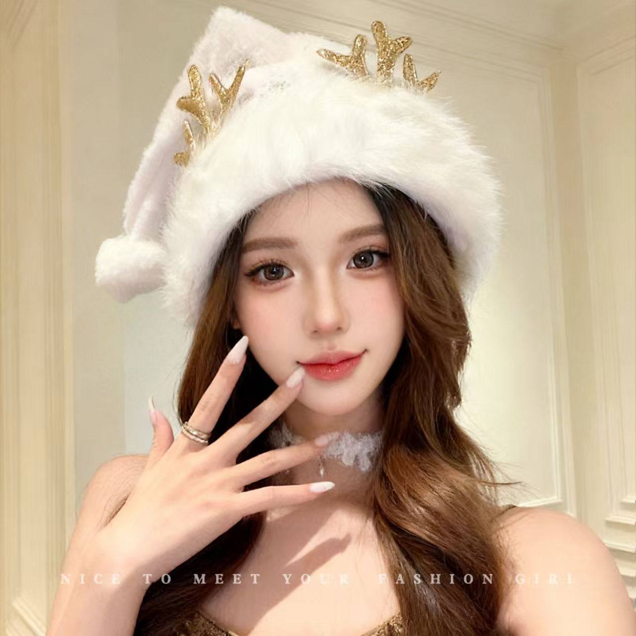 金色鹿角毛绒帽子圣诞节头饰节日装扮氛围感配饰派对穿搭圣诞帽子