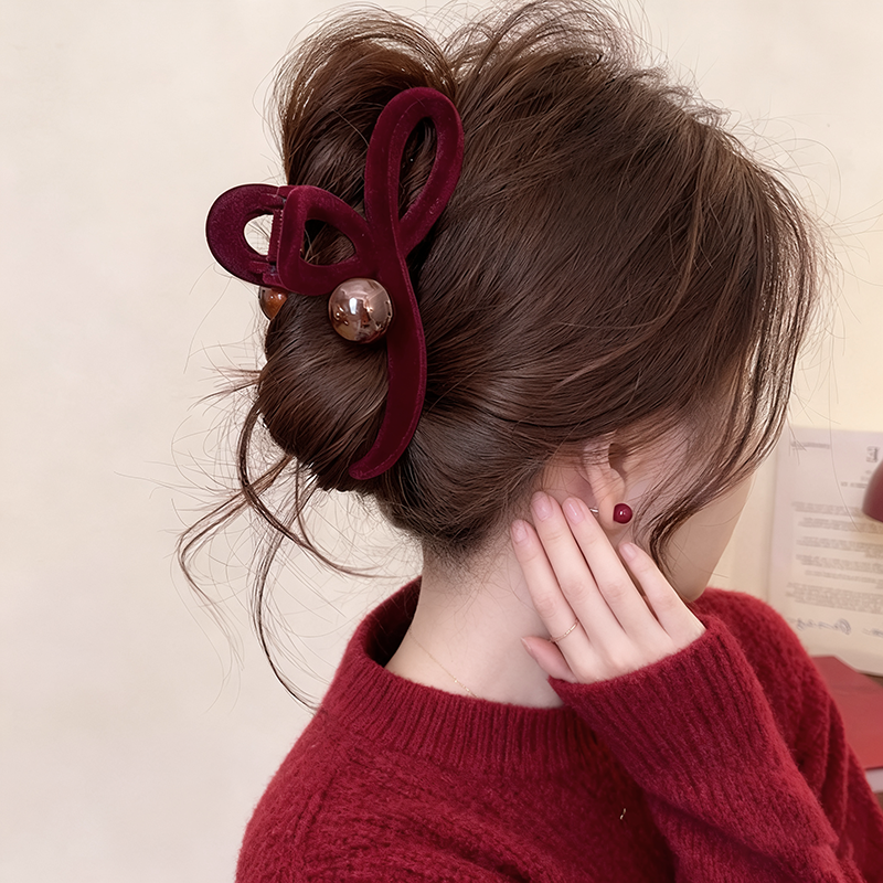 珍珠抓夹新年发饰女2025新款后脑勺盘发鲨鱼夹大号气质高级感发夹