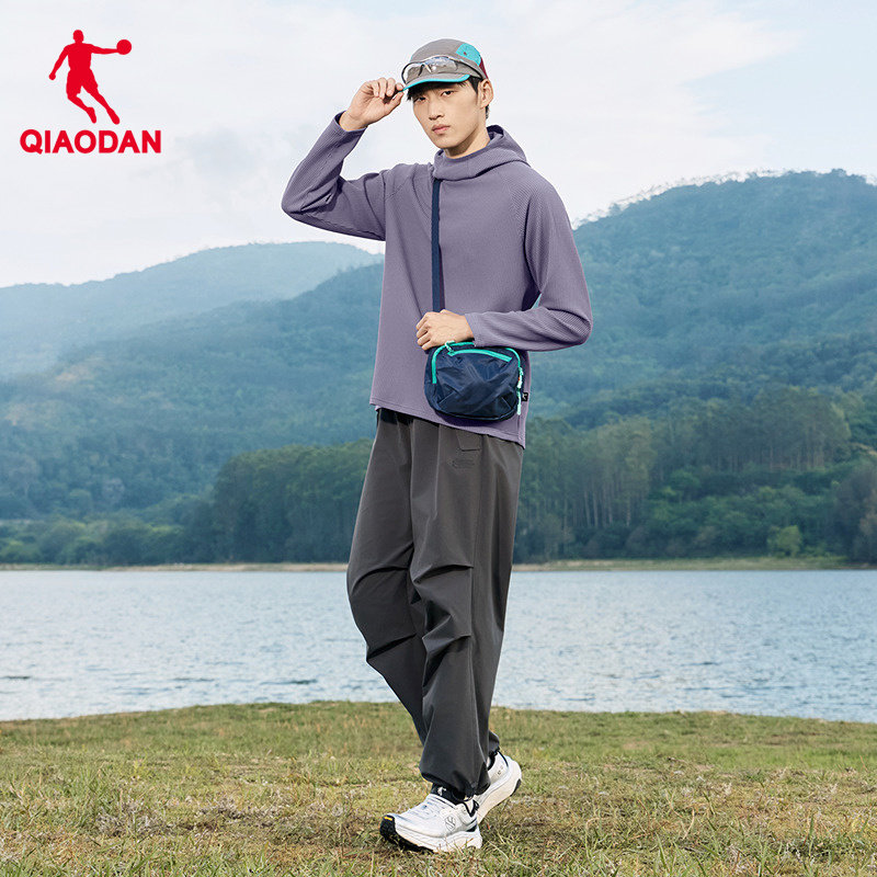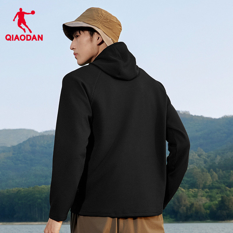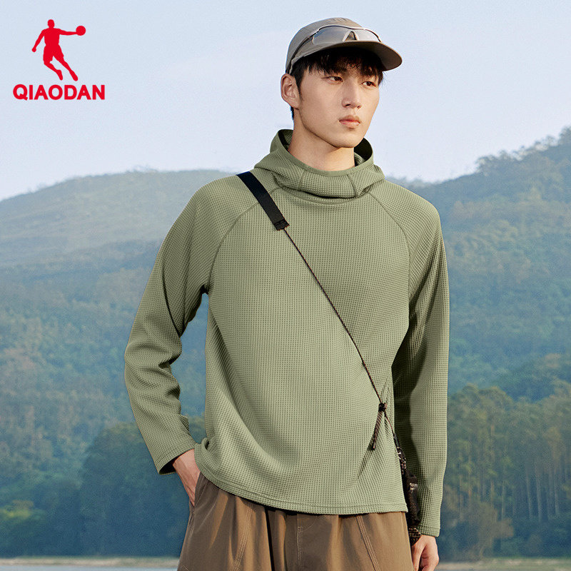乔丹户外运动长袖T恤男2026春季新款华夫格宽松高领连帽套头卫衣
