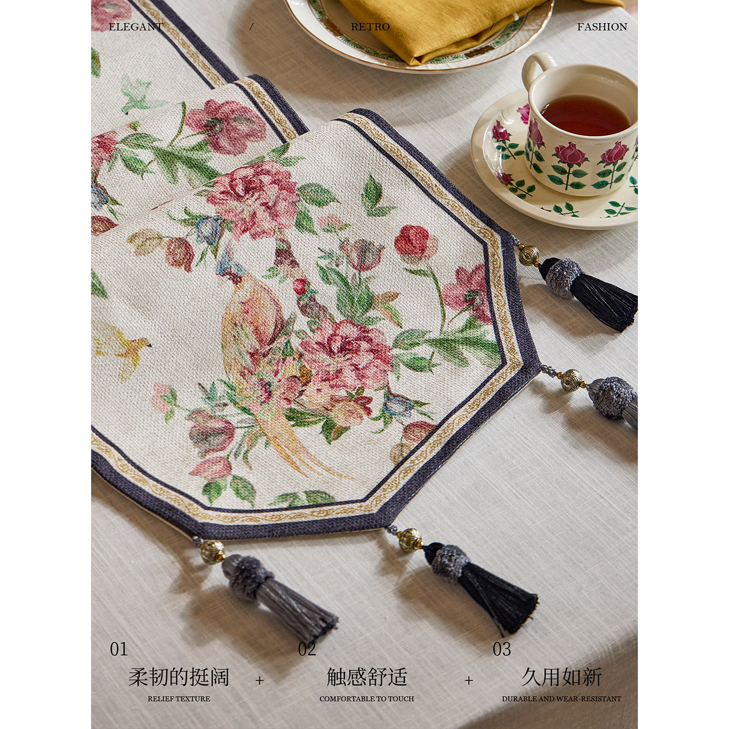 【国补再减15%】蜡笔派梁丹荼联名桌旗牡丹系列新中式轻奢餐桌布