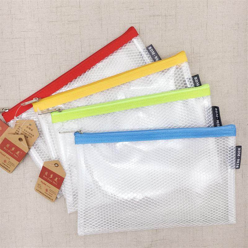 网格文件袋加厚透明网格拉链袋A4试卷收纳袋学生用考试文具袋防水笔袋办公用品批发公文档案袋资料袋包邮