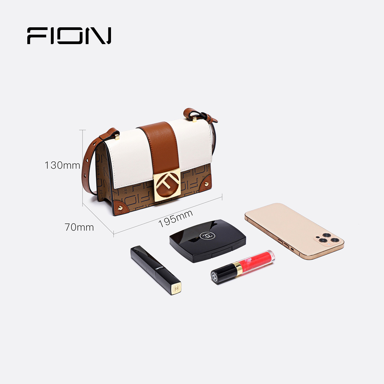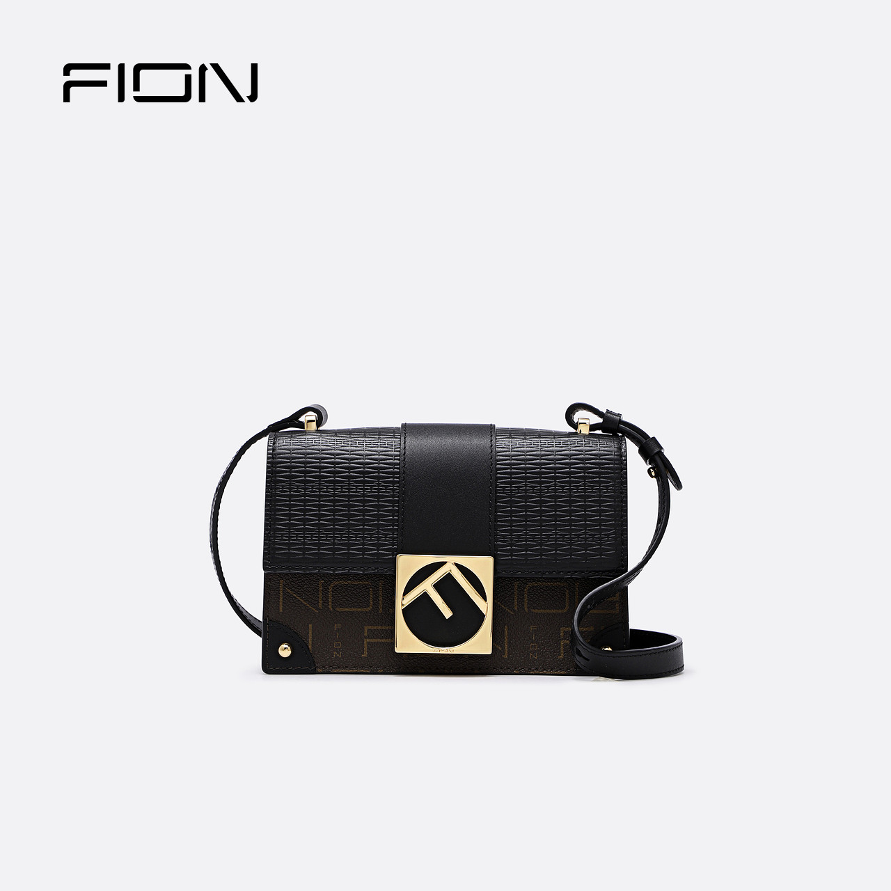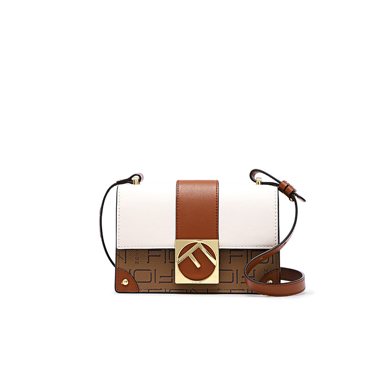 Fion/菲安妮新款轻奢女包 老花盒子小方包 斜挎单肩包牛皮革女包