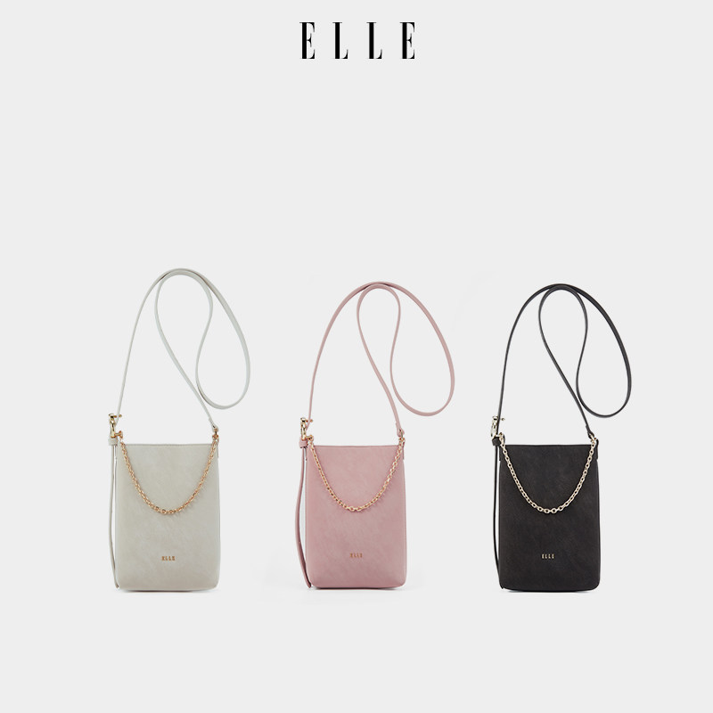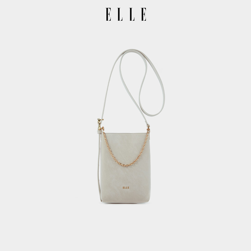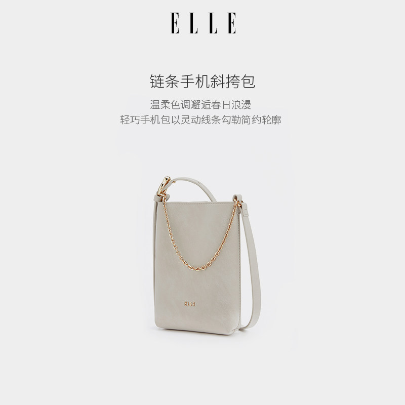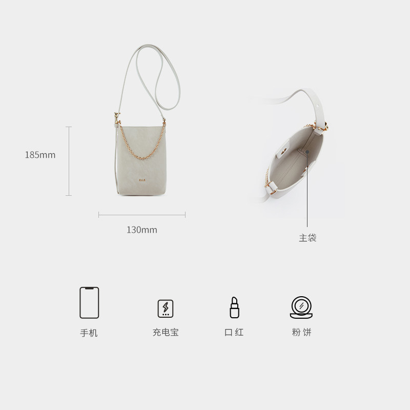 ELLE女包2026新款包包白色链条单肩上班通勤斜挎水桶包精致手机包