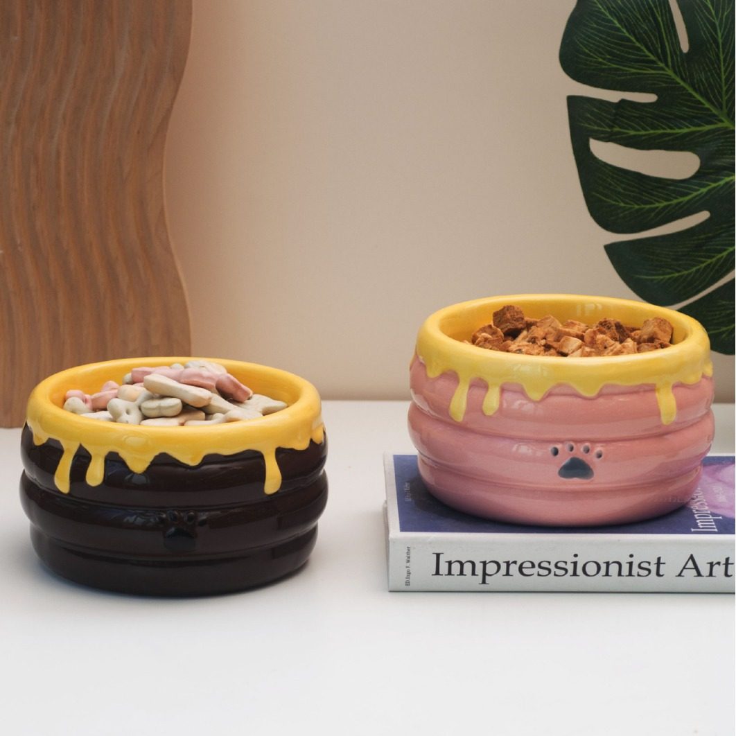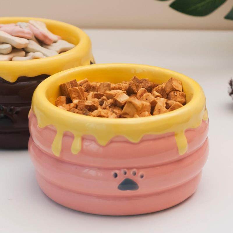 陶瓷猫碗 宠物碗 高脚蜜罐造型 深口大容量防打翻猫碗陶瓷水碗