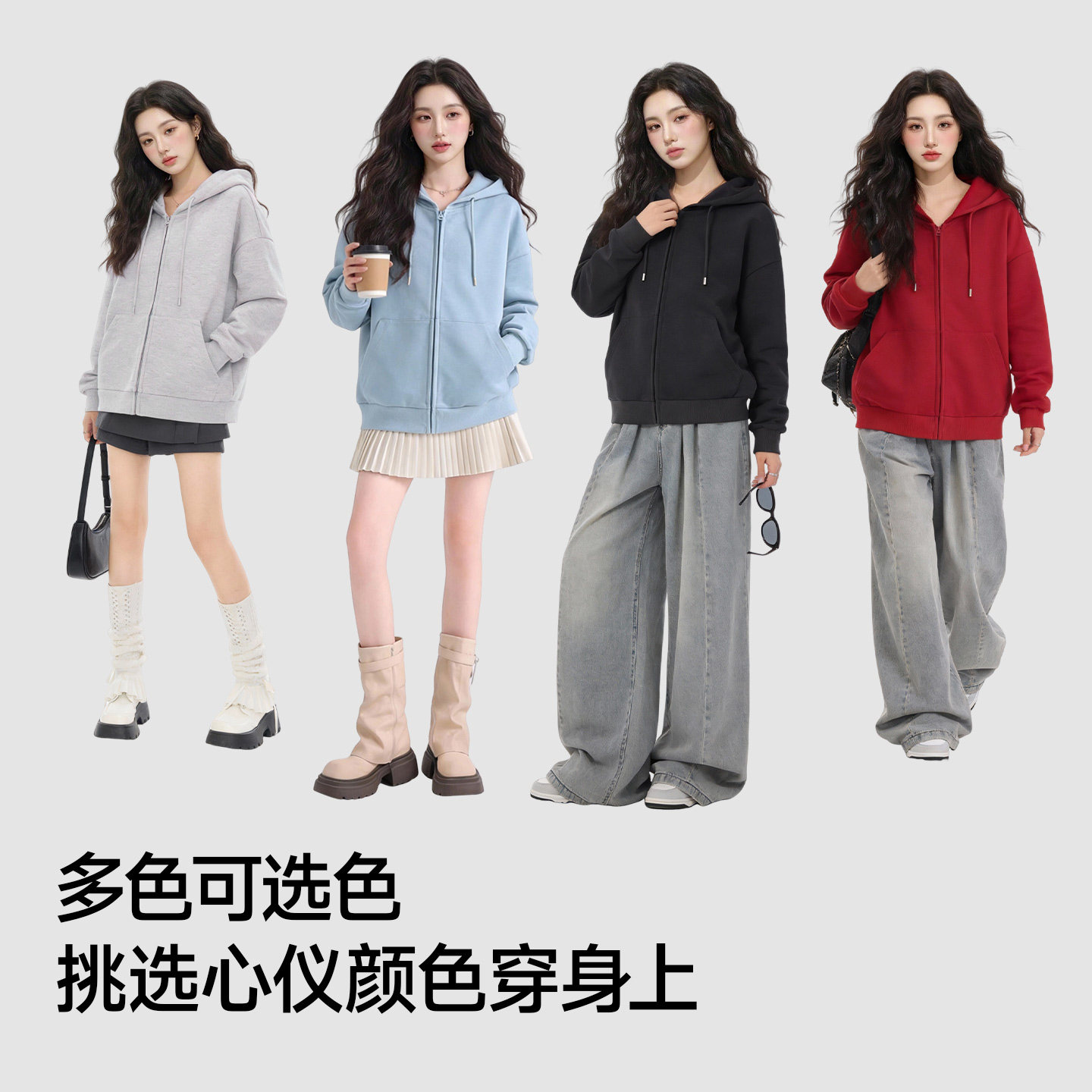 三福卫衣开衫2025新款秋季连帽情侣款外套宽松慵懒风灰色上衣女装