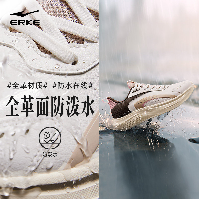 云逐鸿星尔克跑步鞋女鞋冬季新款软底运动鞋革面防泼水减震鞋子女