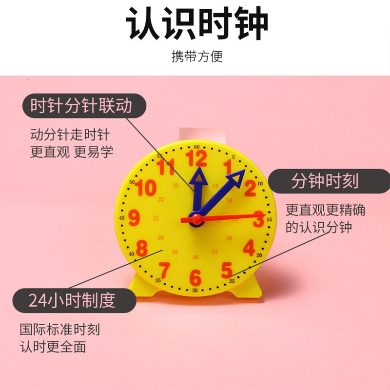 钟表模型小学教具钟面模型小学数学认识钟表和时间时钟一年级数学学具三针联动认识钟表的教具两针非联动儿童