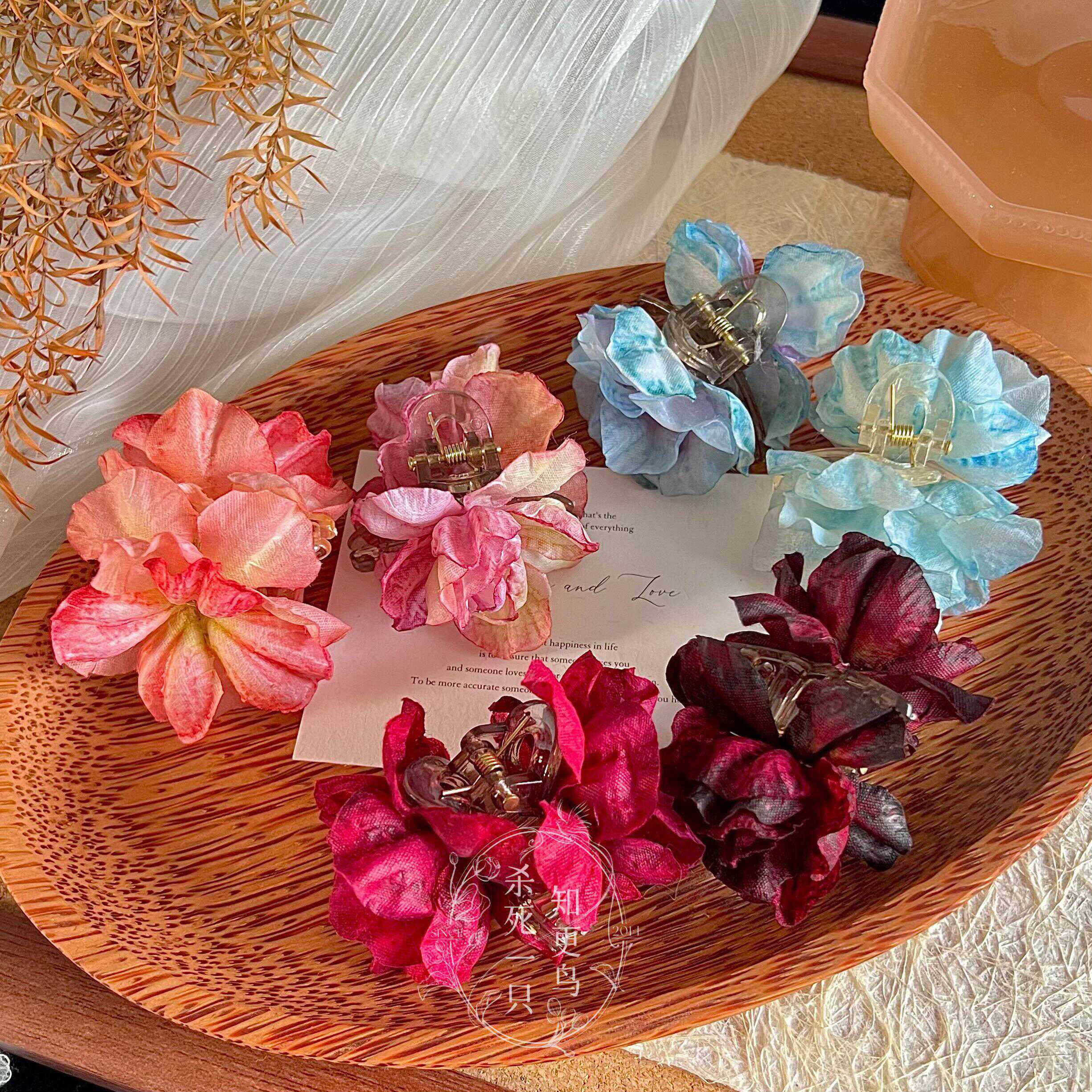 《枝头春》彩色褶皱仿真立体花朵仙气氛围感小抓夹边夹发饰发夹女