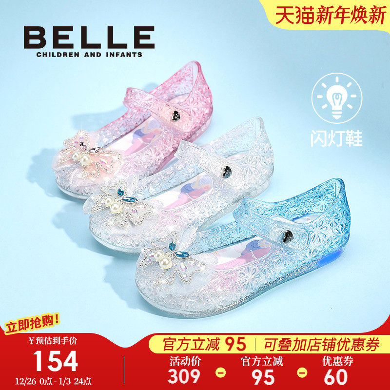 百丽童鞋女童凉鞋2025秋季新款皮鞋儿童公主水晶鞋小女孩发光鞋子