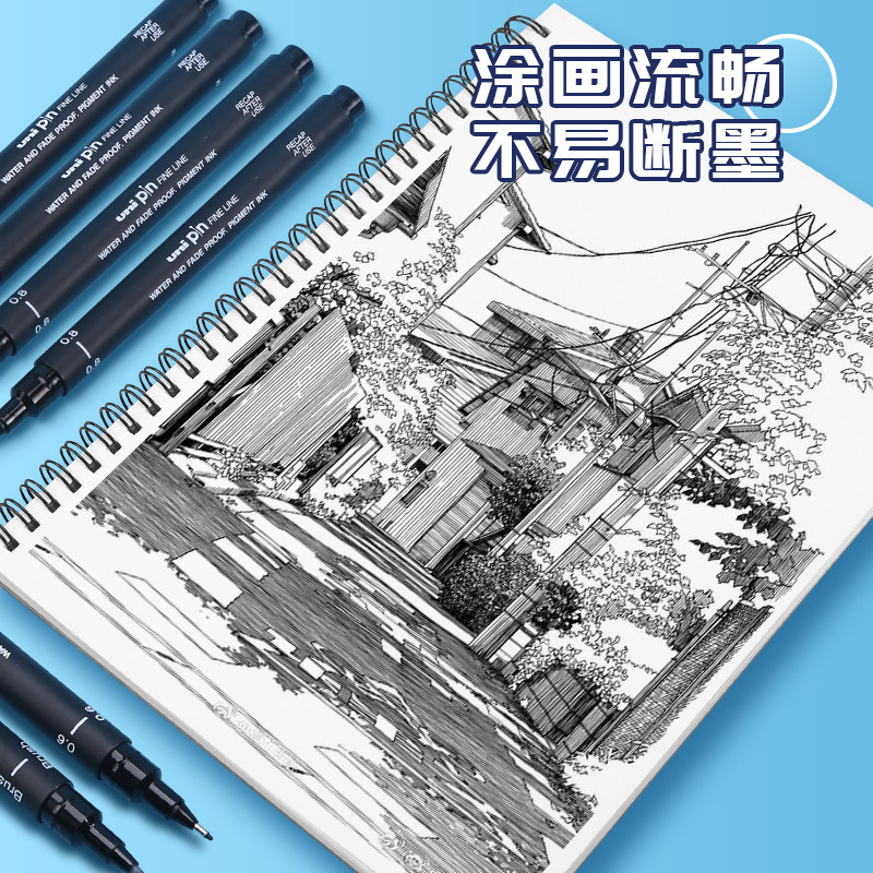 日本UNI三菱针管笔美术专用勾线笔绘图描线笔手绘防水漫画高达动漫描边马克笔画画水彩简笔画笔套装线描全套