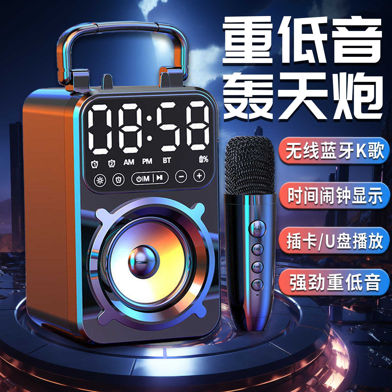 无线蓝牙音箱插卡低音炮户外网红广场舞手提式便携闹钟音响大音量