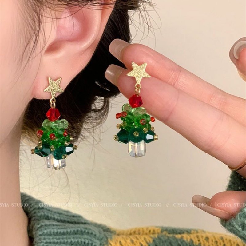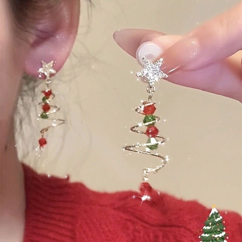 圣诞耳夹~秋冬新款星星圣诞树耳环耳坠高级感爆款耳饰红色蝴蝶